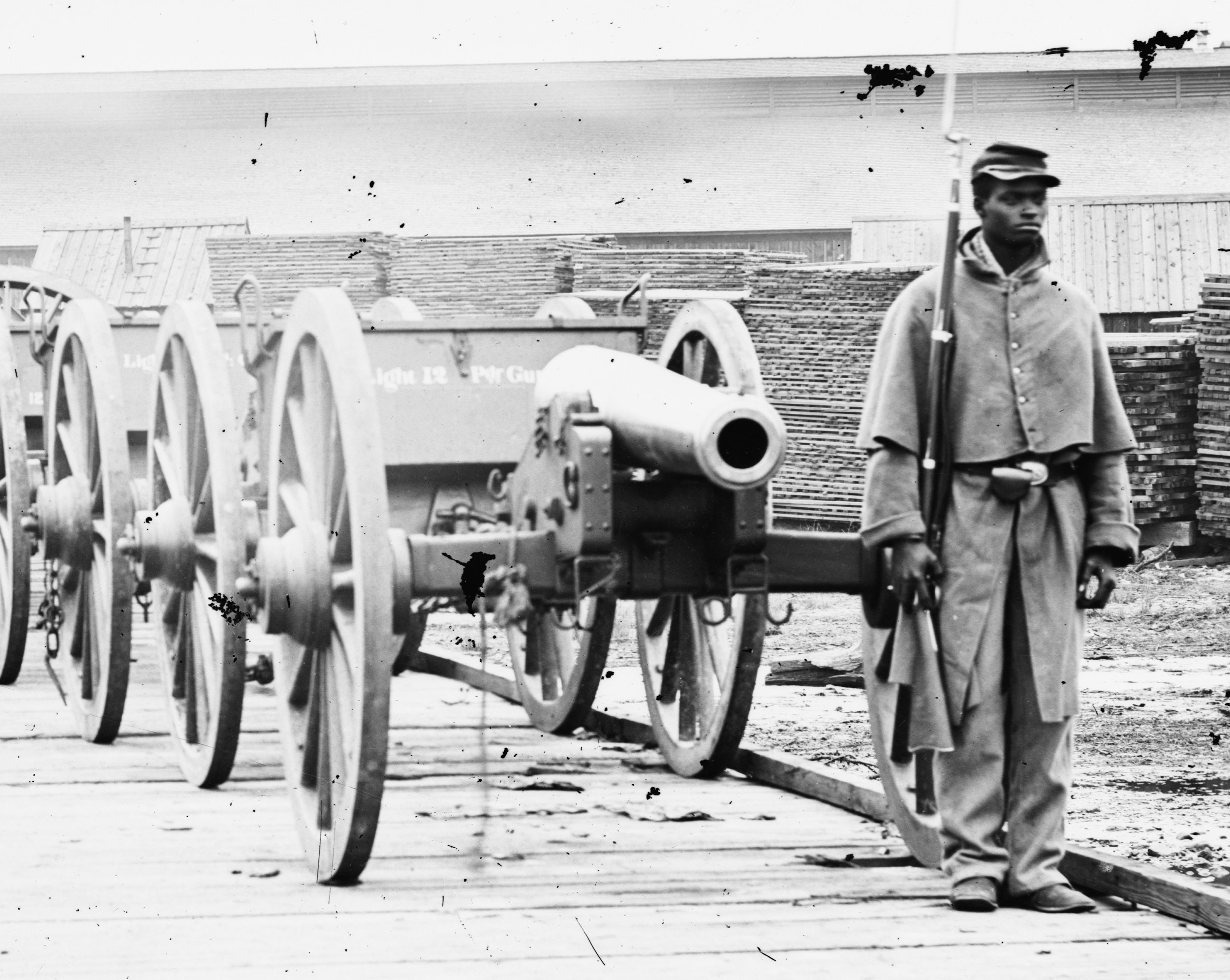 City Point, Virginia. African American soldier guarding U.S. Model 1857 12-pdr. Napoleon: https://www.loc.gov/pictures/item/2018670840/
