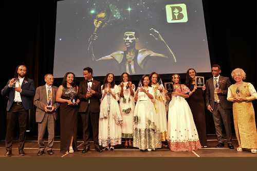 Hosted by the dynamic duo Dr. Alpha Abebe and Teferi Kassa, the evening was ignited by a motivational keynote from Professor Getachew Engida, whose message of unity and purpose deeply resonated with attendees. The audience gave standing ovations as posthumous honoree Laureate Tsegaye Gebremedhin was remembered for his profound impact on modern Ethiopian literature—a moment beautifully acknowledged by his daughters Yodit and Mahlet. Mahlet read one of Tsegaye's poems about the Olympic hero Abebe Bikila, perfectly suiting the occasion.