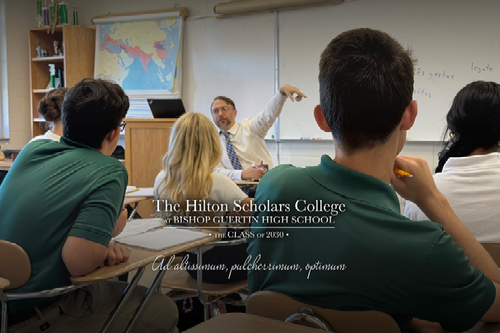 Named in honor of Br. Mark Hilton — the Superior General of the Brothers of the Sacred Heart — the Hilton Scholars College at Bishop Guertin High School is a four-year program designed to challenge, motivate, and inspire our most curious and capable students. Students who are invited to participate in the program will be presented with a rigorous, carefully selected sequence of courses that will invite them to make deep connections between different disciplines and ways of knowing.