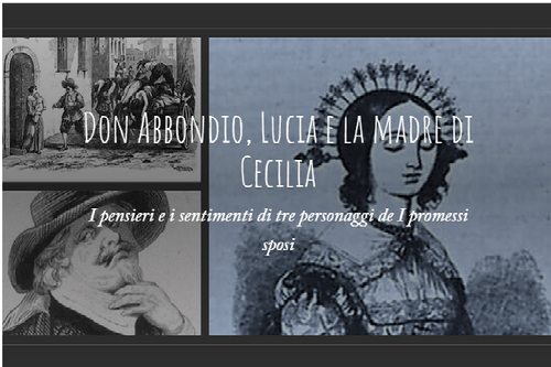 Immaginate di essere il giornalista che raccoglie le parole di Don Abbondio, mettetevi nei panni di Lucia o in quelli della madre di Cecilia e scrivete, in alcune pagine di diario, quello che le due donne hanno provato in quei momenti drammatici.