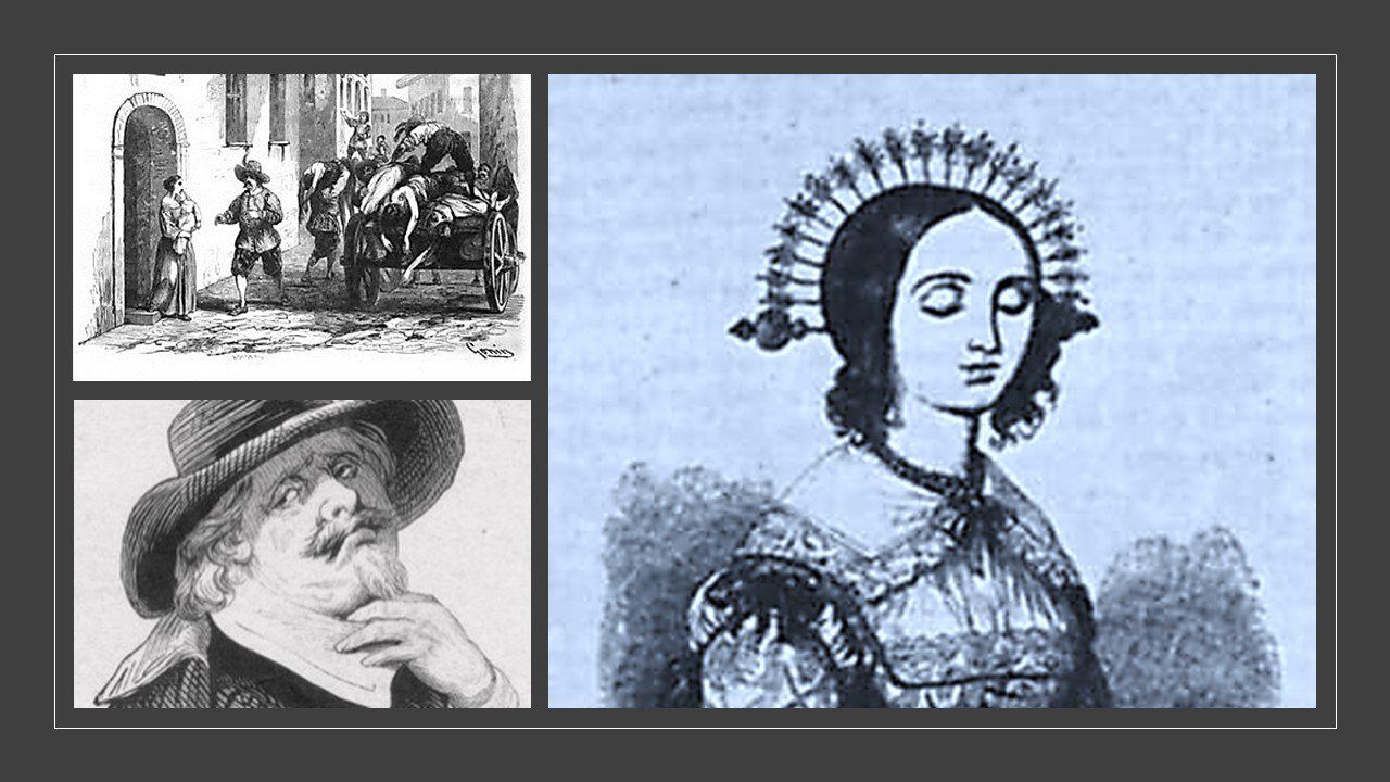 sono straziata, oggi, sedici giugno, è una data terribile. La peste si è diffusa rapidamente, io sono in casa e dalla finestra sento le urla delle madri che devono abbandonare i propri figli ormai morti. Capisco il loro dolore, tra le mie braccia stringo mia figlia Cecilia ormai moribonda, non riesco a piangere per il dolore che provo, non ho più le forze. Mia figlia sta male, da tre giorni ha la febbre altissima, è piena di bubboni sul corpo; non riesce a muoversi, non parla ed io non posso fare niente.
