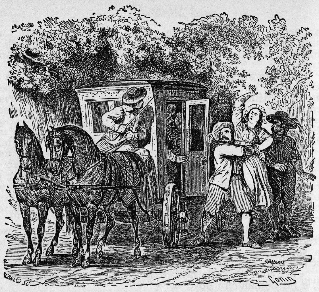 Come mi giro per mostrargli la strada, due mani decise mi afferrano alla vita e mi tirano su; inizio a gridare, mi passano mille cose per la testa! L’uomo mi getta dentro la carrozza, io continuo a gridare, cerco di scappare, sono terrorizzata, anche se gridare è inutile: in questa strada non ho incontrato nessuno, tranne questa maledetta carrozza.