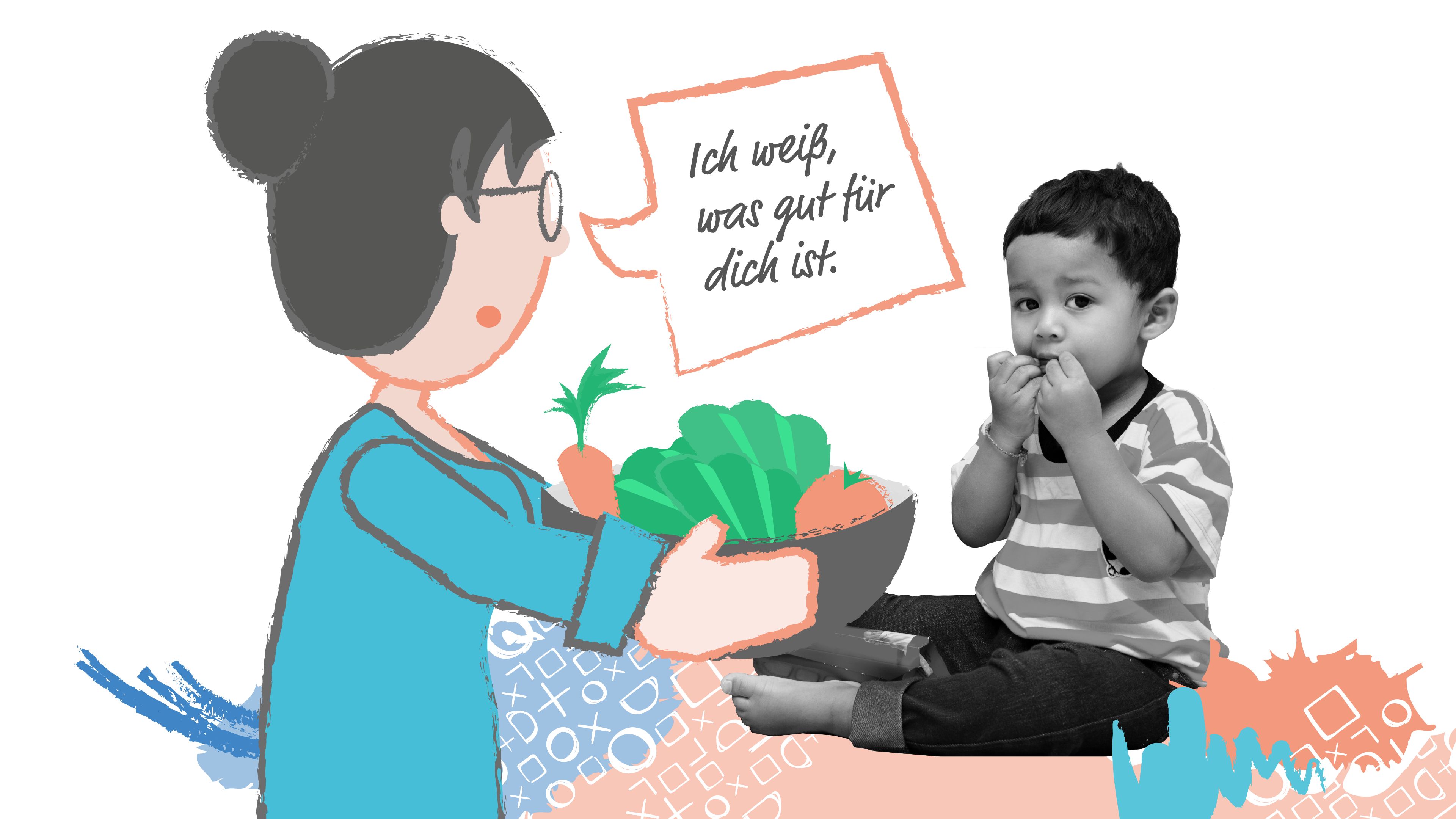 Gemeinsam mit anderen Tagespflegepersonen hat Cemile an einer Weiterbildung zum Recht des Kindes auf Selbstbestimmung über den eigenen Körper teilgenommen. Seitdem hinterfragt sie ihre Haltung. Ihr ist klargeworden, dass aus Macht leicht Zwang werden kann, wenn Erwachsene gegen den Willen der Kinder handeln. Mit dieser Grenzüberschreitung nehmen sie den Kindern die Möglichkeit, ein eigenes Gefühl für ihren Körper zu entwickeln. Sie vermitteln ihnen, dass ihre Stimme selbst in diesen sensiblen Bereichen nicht zählt.