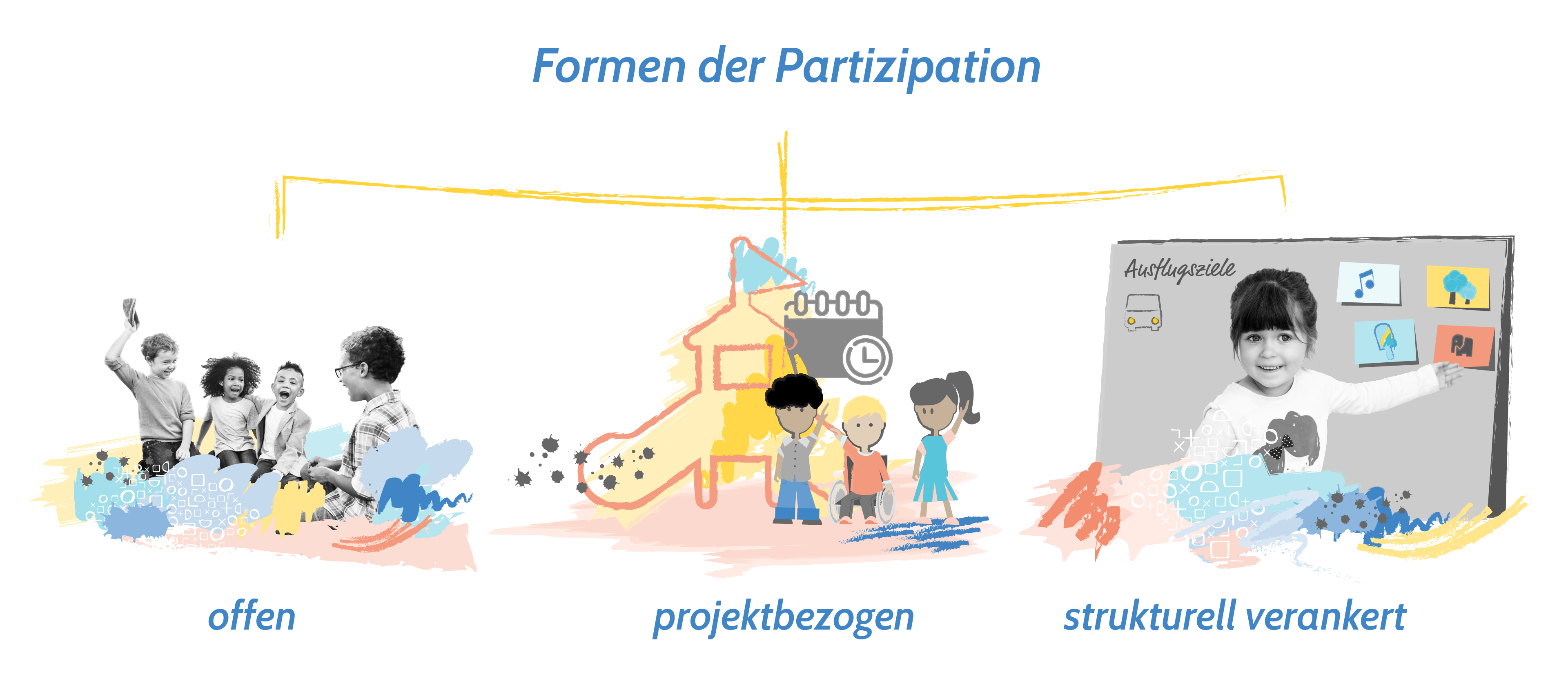 Partizipation als Beteiligung an Entscheidungen braucht einen demokratischen Umgang mit Macht. Das heißt, dass Erwachsene mit Kindern in einen ernsthaften und symmetrischen Dialog treten, um gemeinsam ihre Lebenswelt zu gestalten. Voraussetzung dafür ist, dass Erwachsene sich selbst und den Kindern Partizipation zutrauen.
