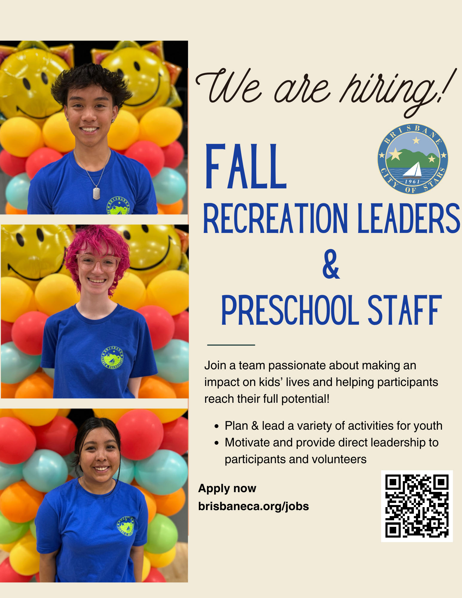 Now Hiring: Fall Recreation Leaders & Preschool Staff