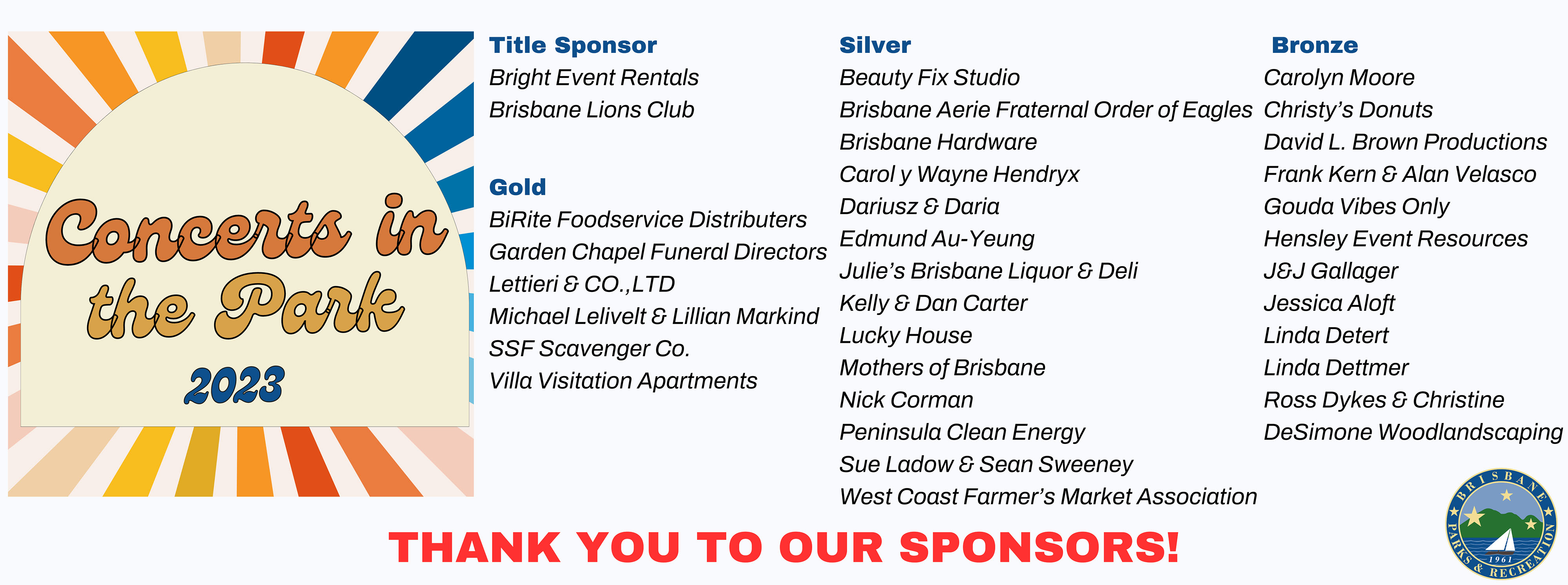 This past Sunday was the final Concerts in the Park, which featured The Houserockers! Thank you for coming out all Summer, Brisbane! Thanks also to all our Concert Sponsors for making the series possible, the Parks and Recreation Commission for their vision of this year's concert series, and the Parks and Rec staff for them running as smoothly as they did.
