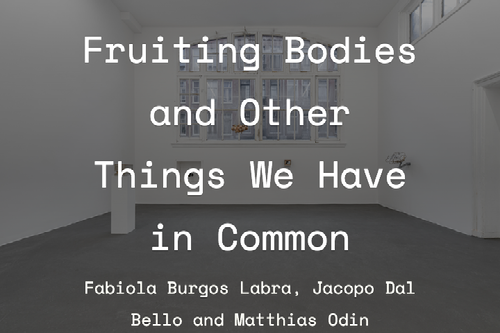 In this exhibition three emerging artists share a focus on assemblages made primarily from “everyday” objects, emphasising both materiality and its temporality, while approaching it from their own perspectives: Fabiola Burgos Labra (b. 1984, Chile) explores by mummifying fruits the ephemeral, Jacopo Dal Bello (b. 1989, Italy) works are influenced by digital culture and archiving and Matthias Odin (b. 1995, France) creates works from souvenirs of spontaneous encounters that remind us of ready-mades.