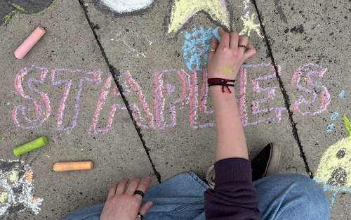 Teddy, a seven-year-old Cavalier King Charles Spaniel, belongs to Angela Simpson, an art teacher at Staples. She often draws portraits and paintings of him, displayed in her art room in the art wing of Staples.