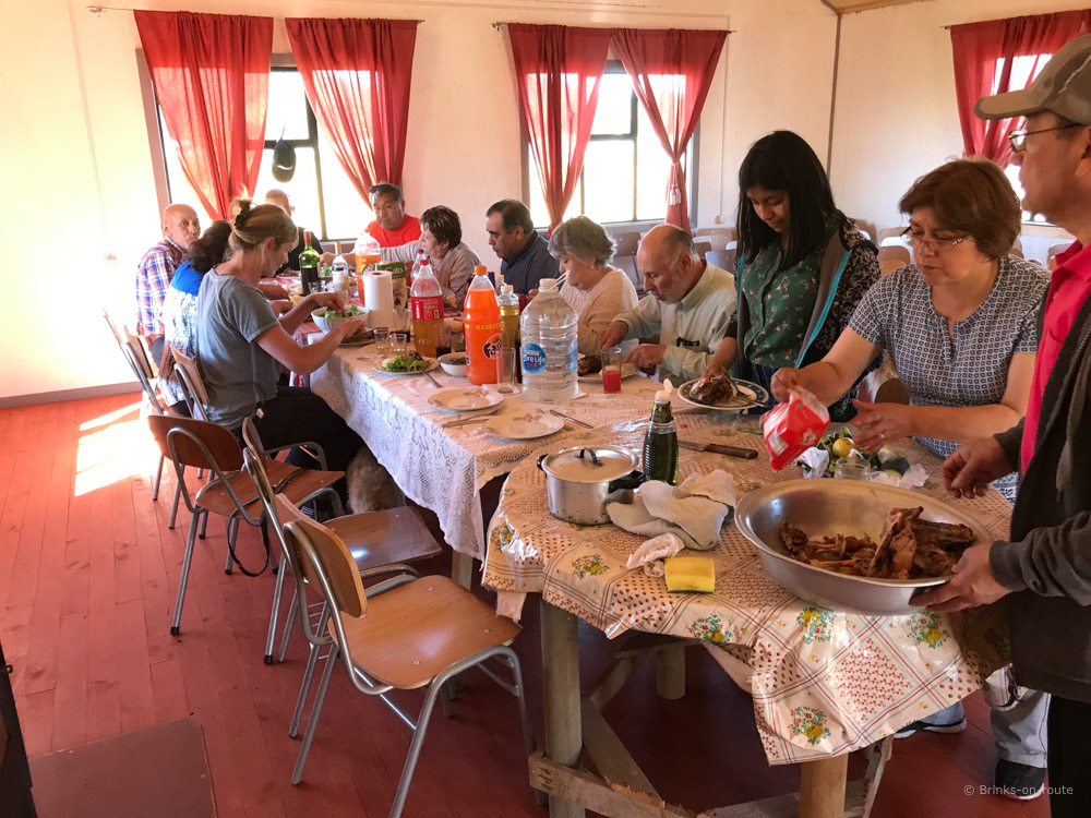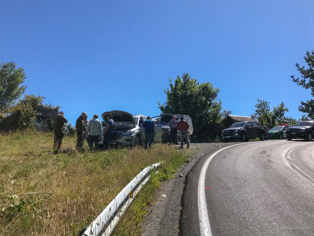 Wanneer we onderweg zijn naar het strand om te overnachten zien we een groepje Chilenen langs de kant van de weg staan. Het leek er op alsof ze een probleem hadden...