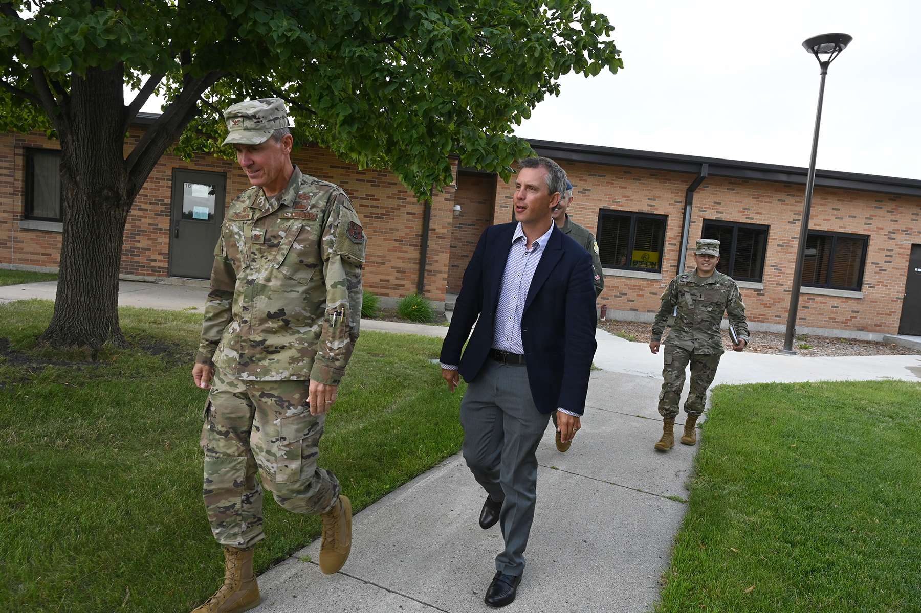 U.S. Congressman Kelly Armstrong, visited the Happy Hooligans of the 119th Wing and met with senior leaders during a base familiarization tour and mission brief at the N.D. Air National Guard Base in Fargo, N.D. on Aug. 7, 2020. Discussions with Armstrong included unit activities, potential Air Guard response to natural disasters, organizational impact on the community, and recruiting and retention efforts. (U.S. Air National Guard story and photo by Senior Master Sgt. David H Lipp)