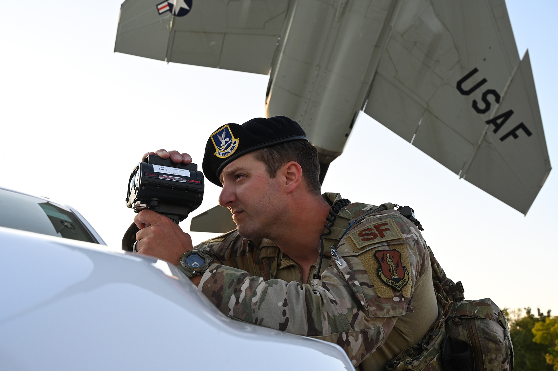 Vehicle driving speeds are monitored daily by 119th Security Forces Squadron members at the N.D. Air National Guard Base, in Fargo, N.D. Unit members caught speeding on base are issued a citation. While there is no fine attached to the citation, members will lose points on their on base driving record and their commander is notified of the infraction. (U.S. Air National Guard story and photos by Chief Master Sgt. David H. Lipp)
