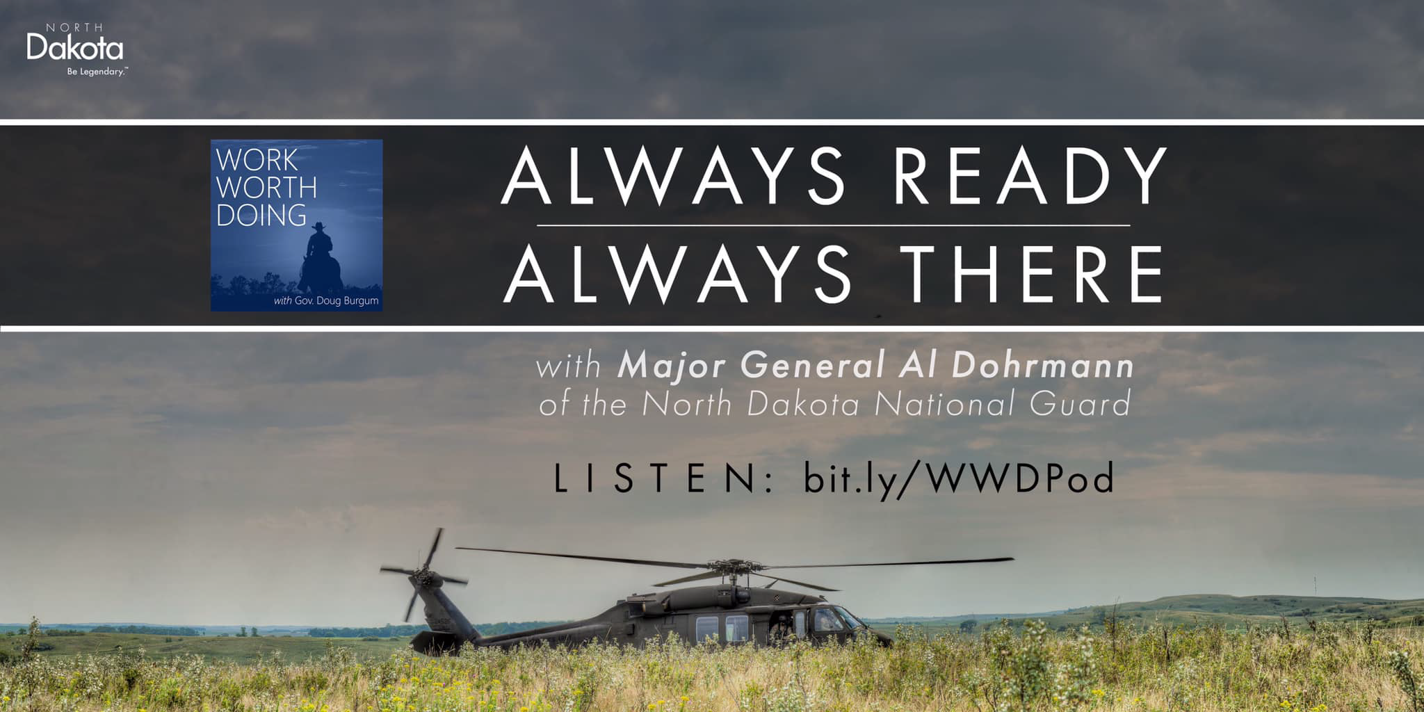 Recently, Maj. Gen. Al Dohrmann was a guest on Gov. Doug Burgum's podcast, "Work Worth Doing." The state's leaders had a conversation about the contributions made by employees who work under the Office of the Adjutant General. Discussion included the multiple facets of the North Dakota National Guard's mission, including fighting America's wars, protecting the homeland and maintaining partnerships. They also visited about the work being done within the North Dakota Department of Emergency Services, at both the Department of Homeland Security and State Radio. Click to Download podcast.