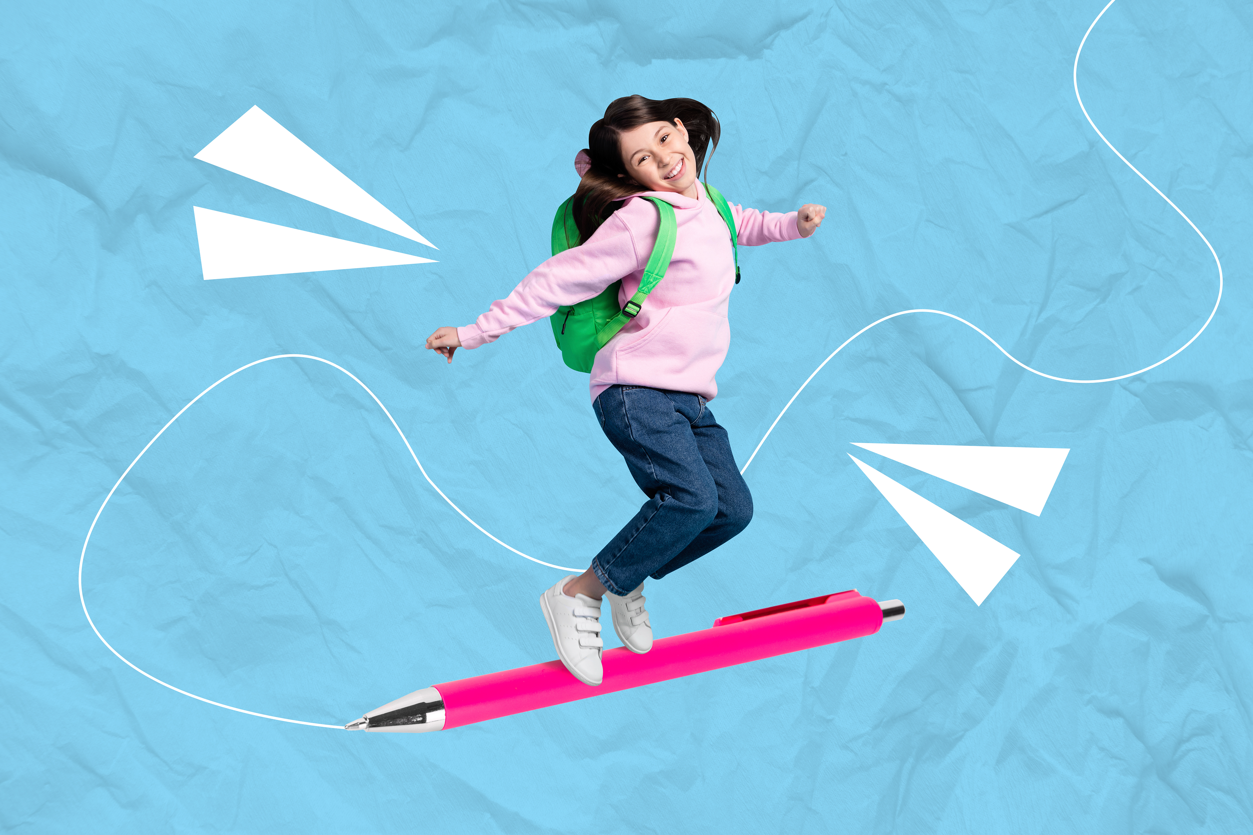 Creato con immagini di Evgeniy Kalinovskiy - "small schoolchildren with colorful school bags and backpacks run to school. Back to school, education, elementary school." • wavebreak3 - "Group of schoolchildren running in an outdoor corridor at elementary school" • Drazen - "Mature teacher assists her student during class at elementary school." • Cultura Allies - "Children standing in a row outdoors" • vectorfusionart - "Children using digital table in library" • Cavan for Adobe - "Girl doing scientific experiments at school" • deagreez - "Magazine poster collage of happy school child ride pencil writing line isolated draw blue color background"