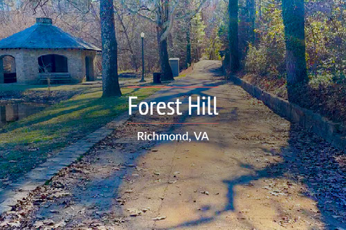 Annexed by the City of Richmond in 1933, Forest Hill Park offers 105 acres of outdoor enjoyment wrapped around a secluded lake. Walkers and bikers have access to 3.2 miles of trails through the wooded, hilly terrain. Other recreational options include tennis courts, six pickleball courts, a playground, and one of the most popular sledding hills in the area.