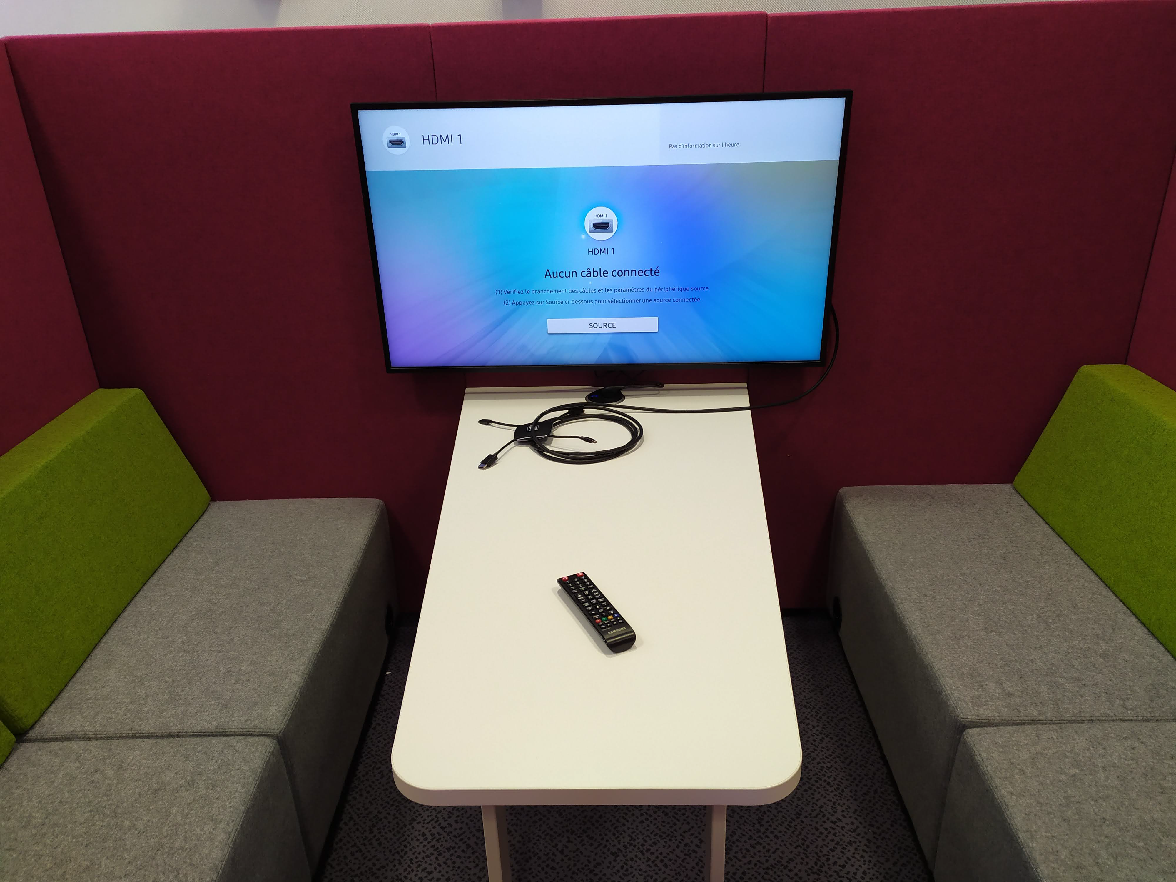 La connexion wifi vous permet d'organiser des visioconférences. Une fois la box réservée, présentez votre carte d'étudiant à l'accueil pour retirer la télécommande !