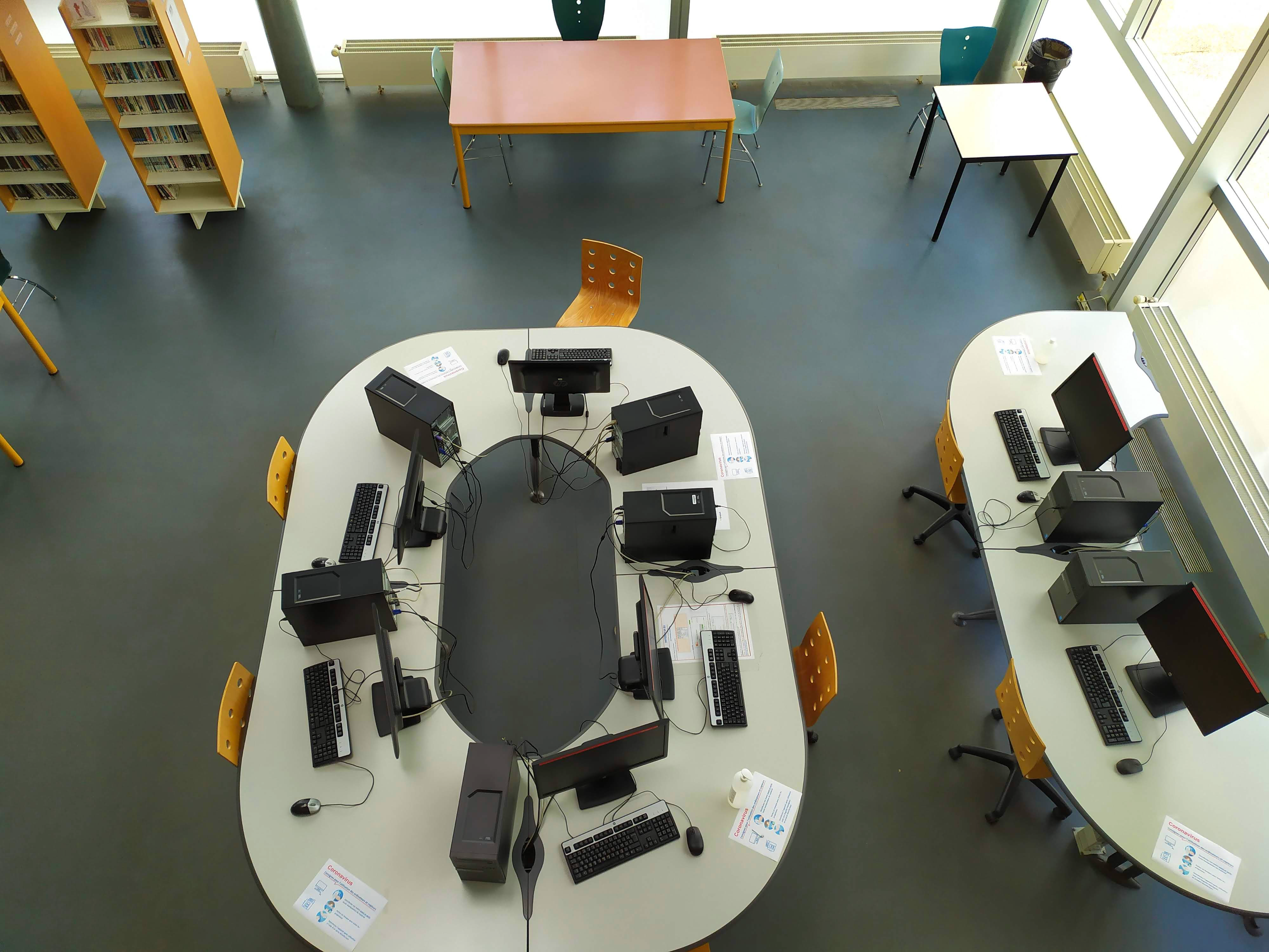 10 postes informatiques en accès libre pour consultation internet, messagerie. Comprend le pack Office 2019 pour vos besoins bureautiques.