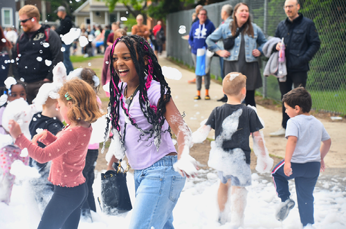 The Rogers community gathered for the annual Ice Cream Social on Thursday, May 29, 2025. The event was packed with families and students. Families watched kids play in the gaga ball pit and on the playground and students enjoyed a foam machine while music filled the air.