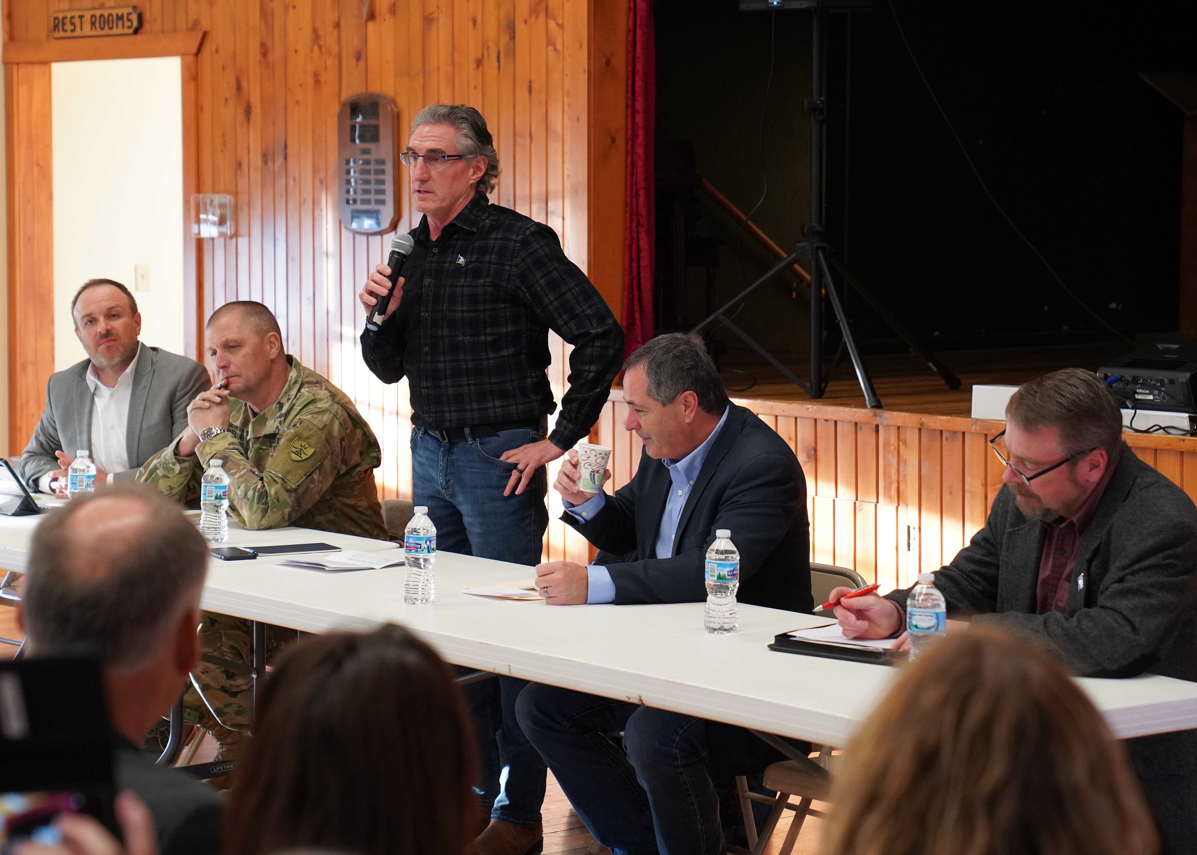 During his visits, Burgum explained the state’s whole-of-government approach to dealing with fall floods. He was joined by representatives from a host of state agencies, to include the Department of Environmental Quality, Department of Human Services, Department of Health, Department of Transportation and the State Water Commission. For updates and information on the flooding situation, visit ndresponse.gov.
