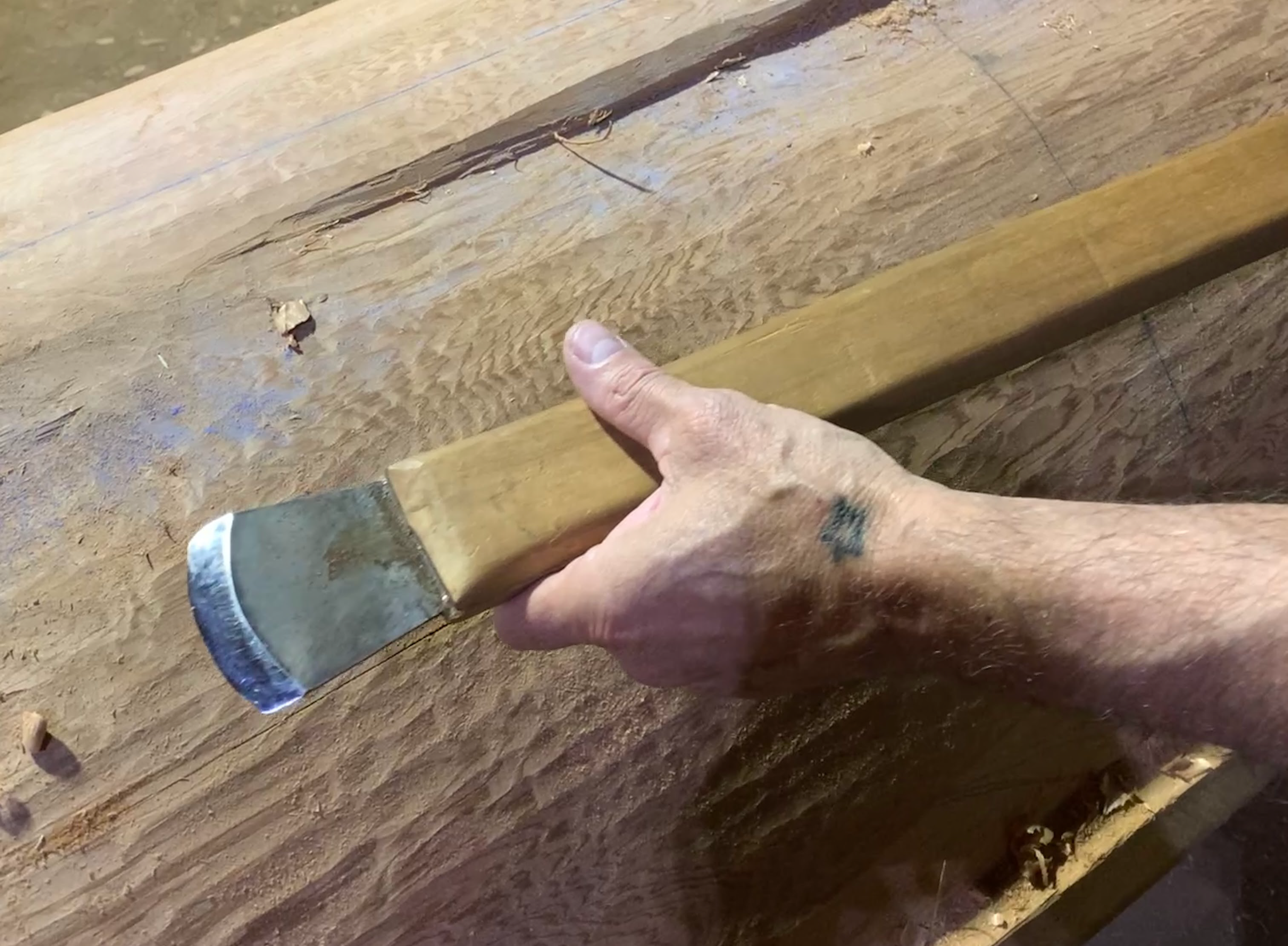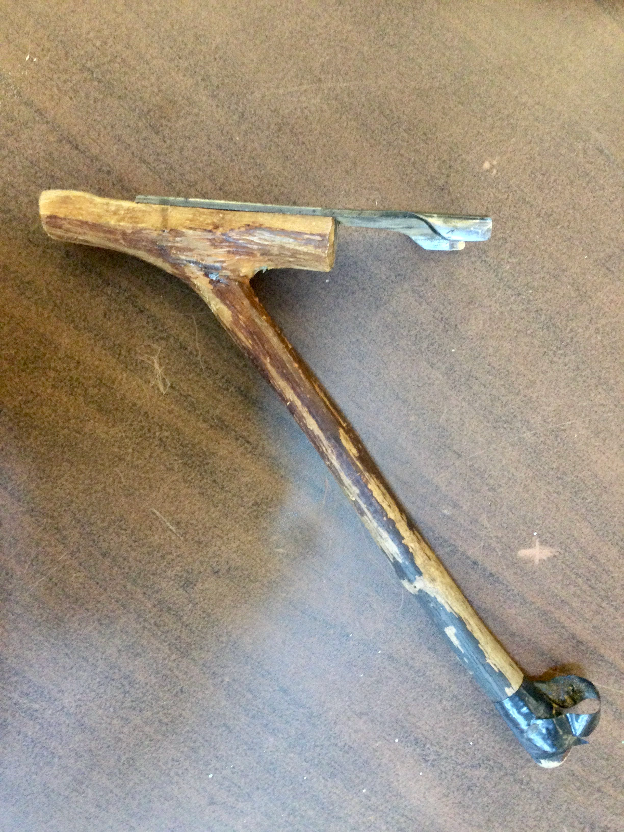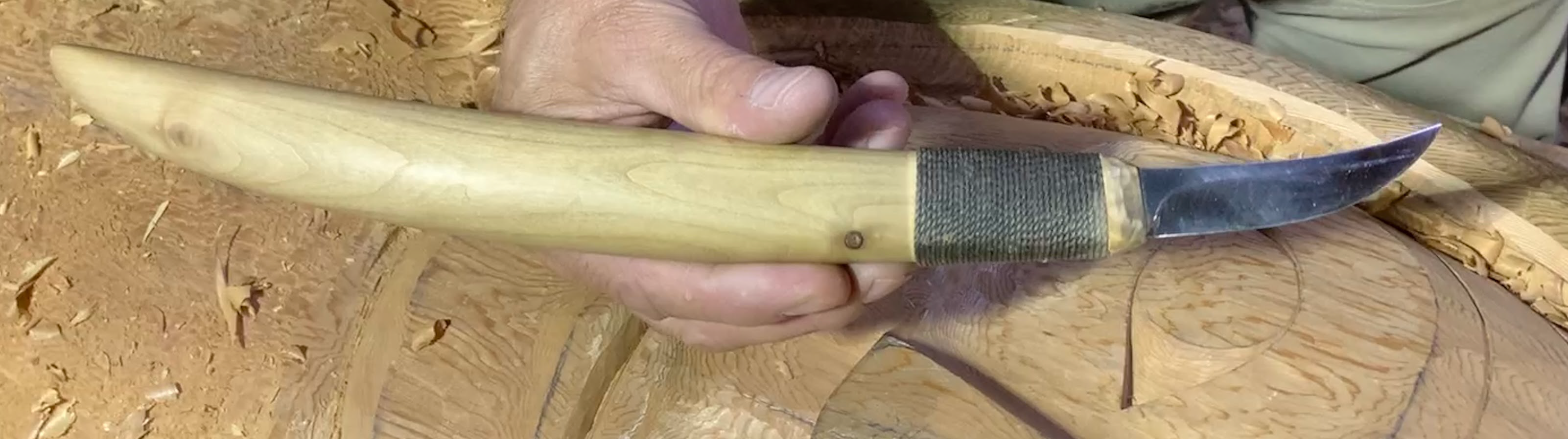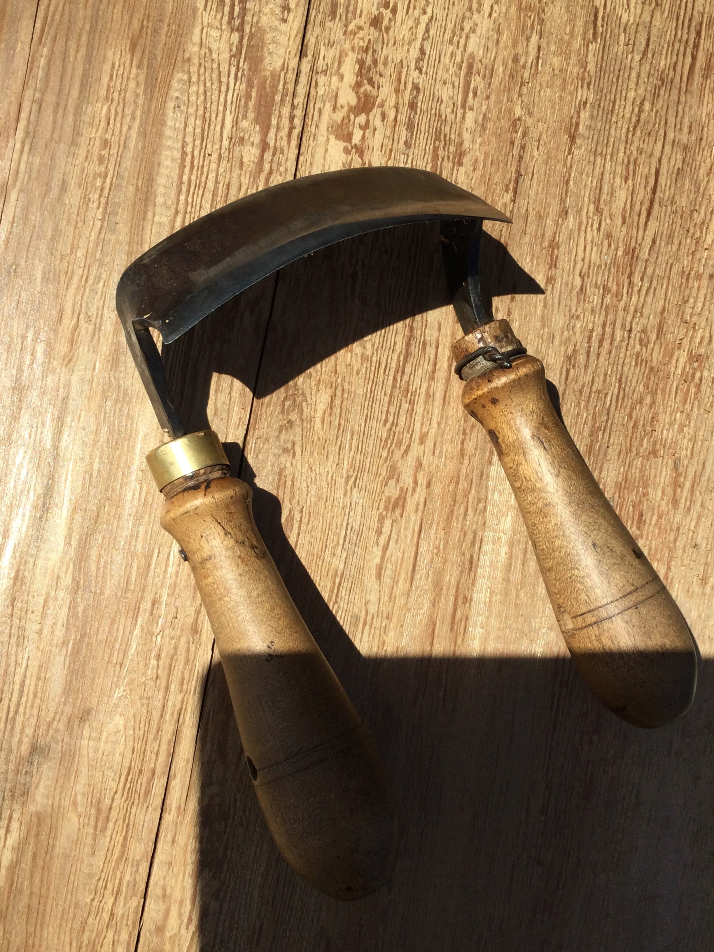 Raphael then used a Draw Knife to create a uniform ovoid to carve from. This knife here is pretty old (60-100 years old) and was actually a Farrier Knife that was used to shape Horseshoes. This knife creates beautiful curled pieces of Cedar. Check out the image below. What does it remind you of?