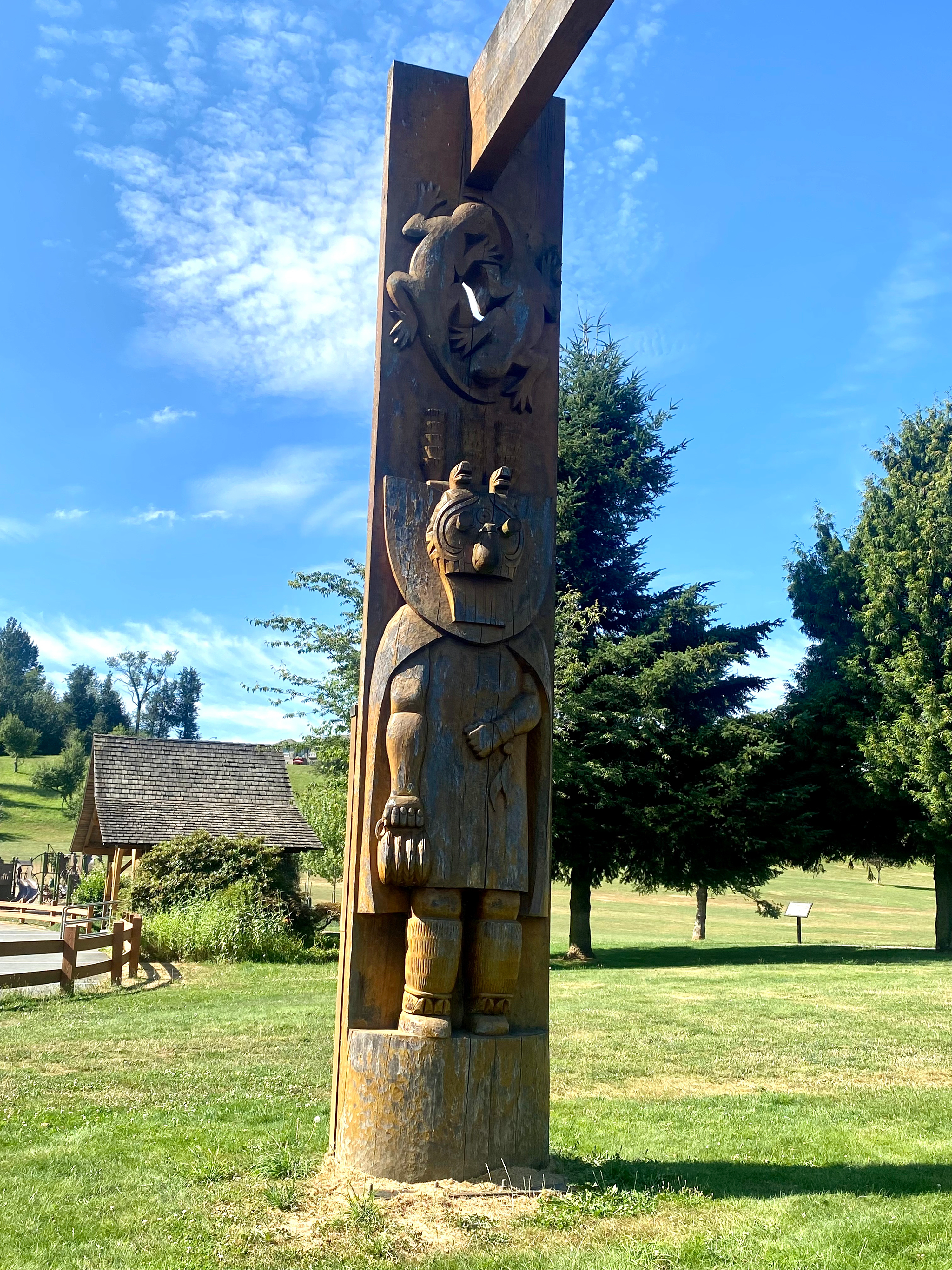 The sister tree to this tree carries many stories as well. You can see it at the Fraser River Heritage Park. Raphael carved these pieces as well "to create a positive, commemorative monument as a celebration of reconciliation between residential school survivors and the Catholic Church" (The Abbotsford News - https://www.abbynews.com/community/sumas-monument-to-be-erected-at-fraser-river-heritage-park/)