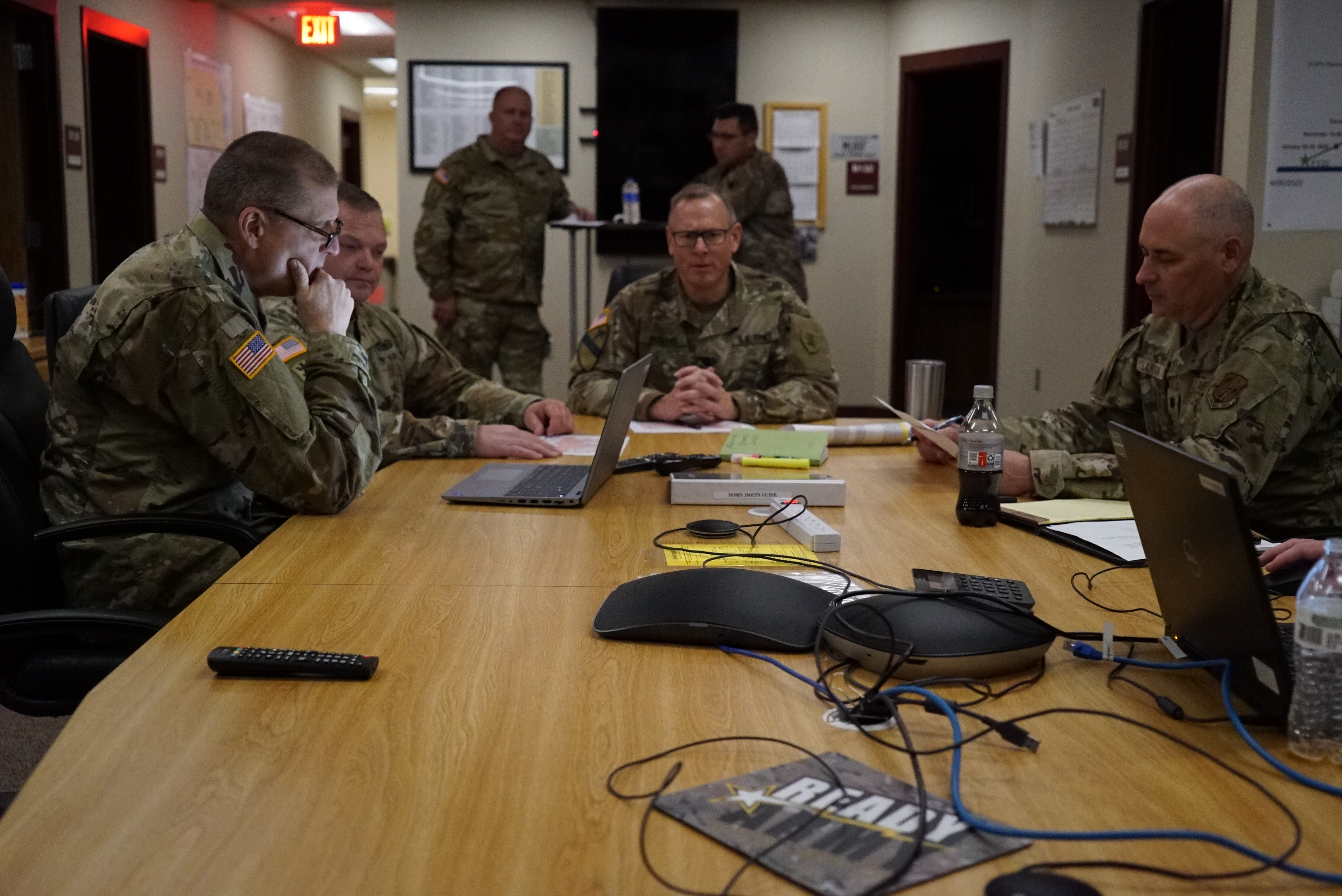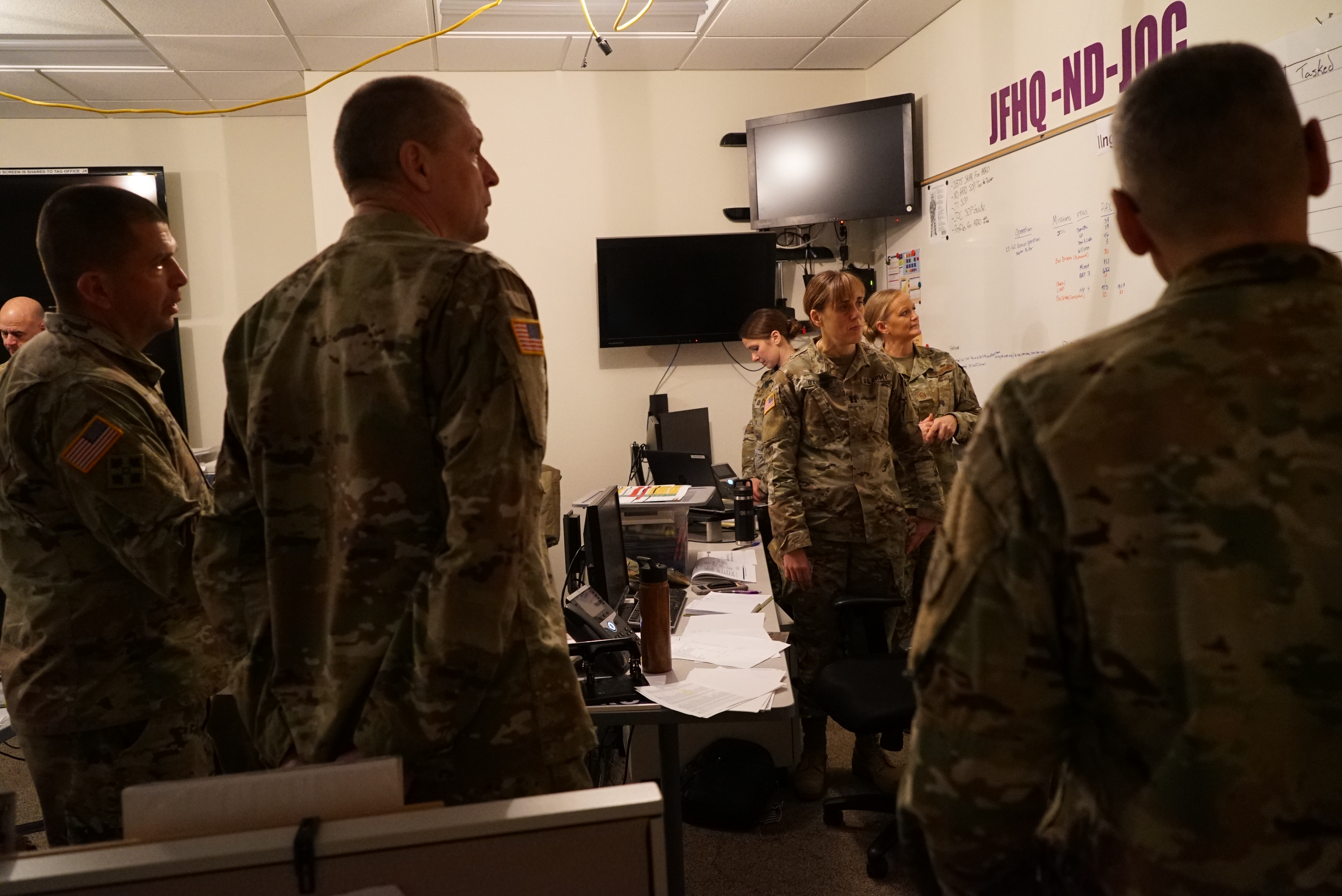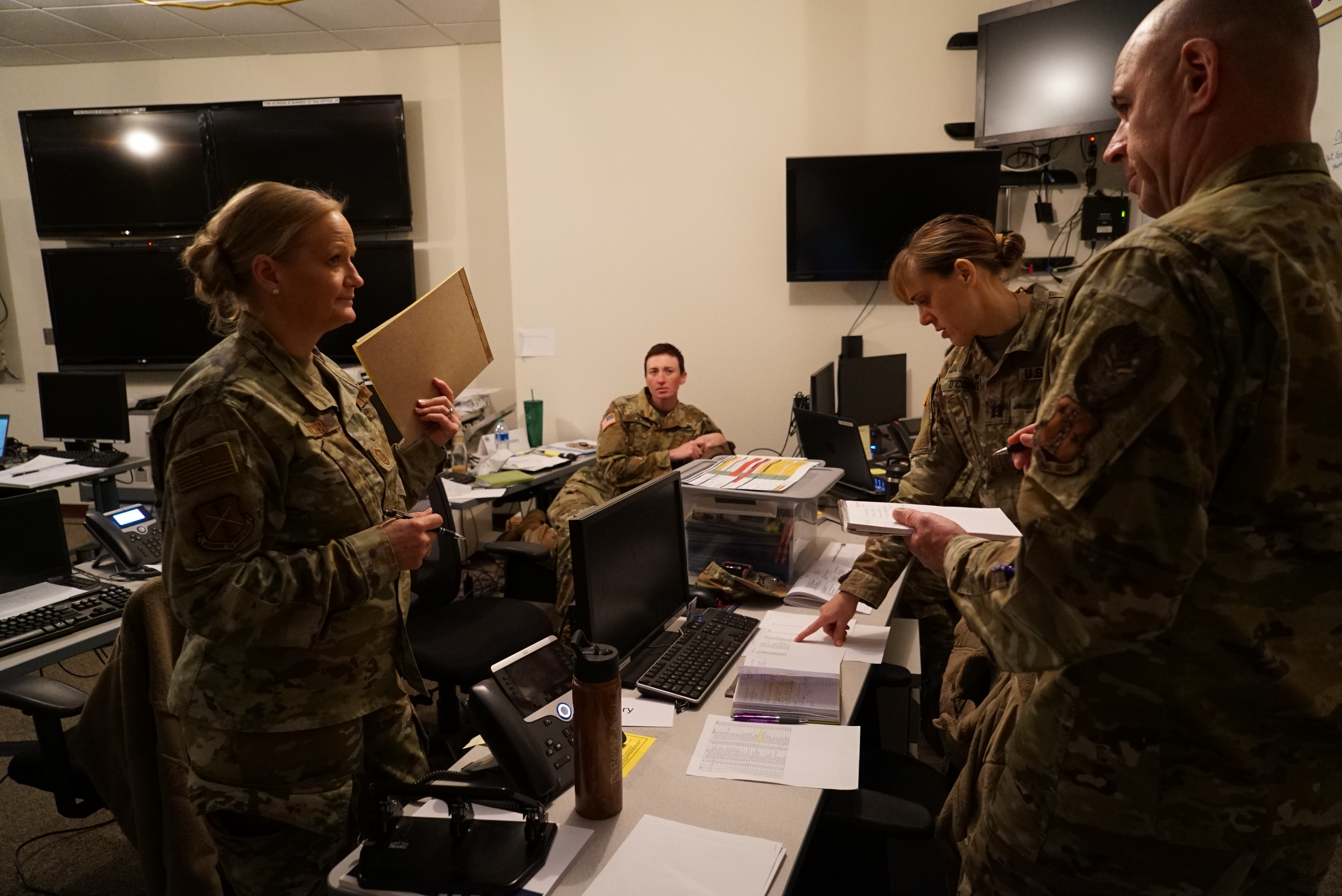 Joint Operations Center (JOC) leadership prepare to start a infrastructure cyber attack response exercise at Fraine Barracks in Bismarck, Nov. 19, 2022.