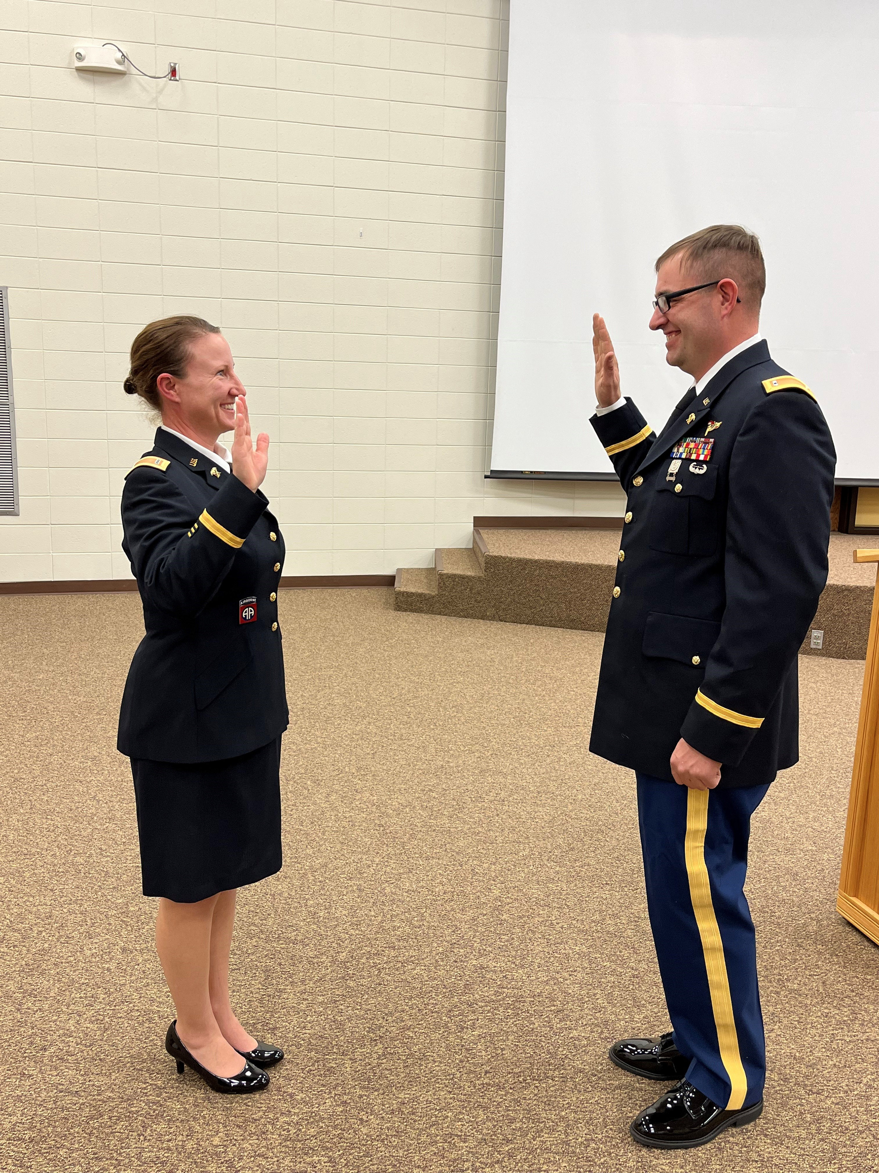 Lt. Col. Derek Kuntz, commander, 164th Engineer Battalion, presided over a promotion ceremony for Jonathan Pearson, senior intelligence NCO, 164th Engineer Battalion, at the Minot Armed Forces Reserve Center, Minot, N.D., Nov. 19, 2022.