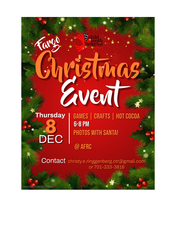 The Service Member & Family Support will host a Christmas event on Dec. 8, 2022 at the Fargo Armed Forces Reserve Center, Fargo, N.D. See flyer for details.