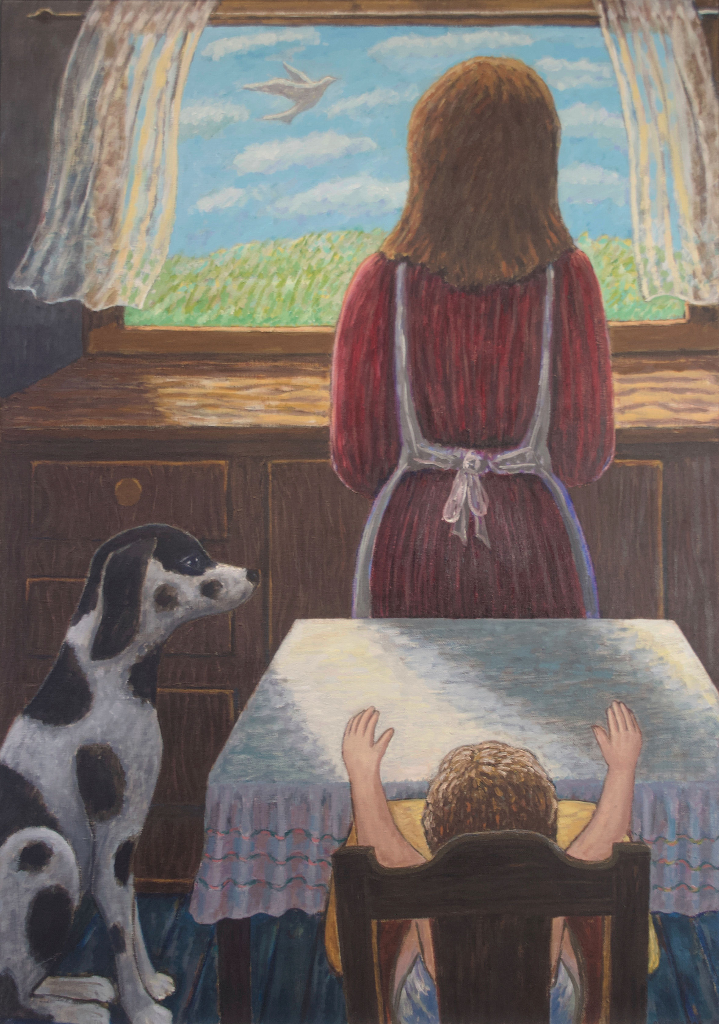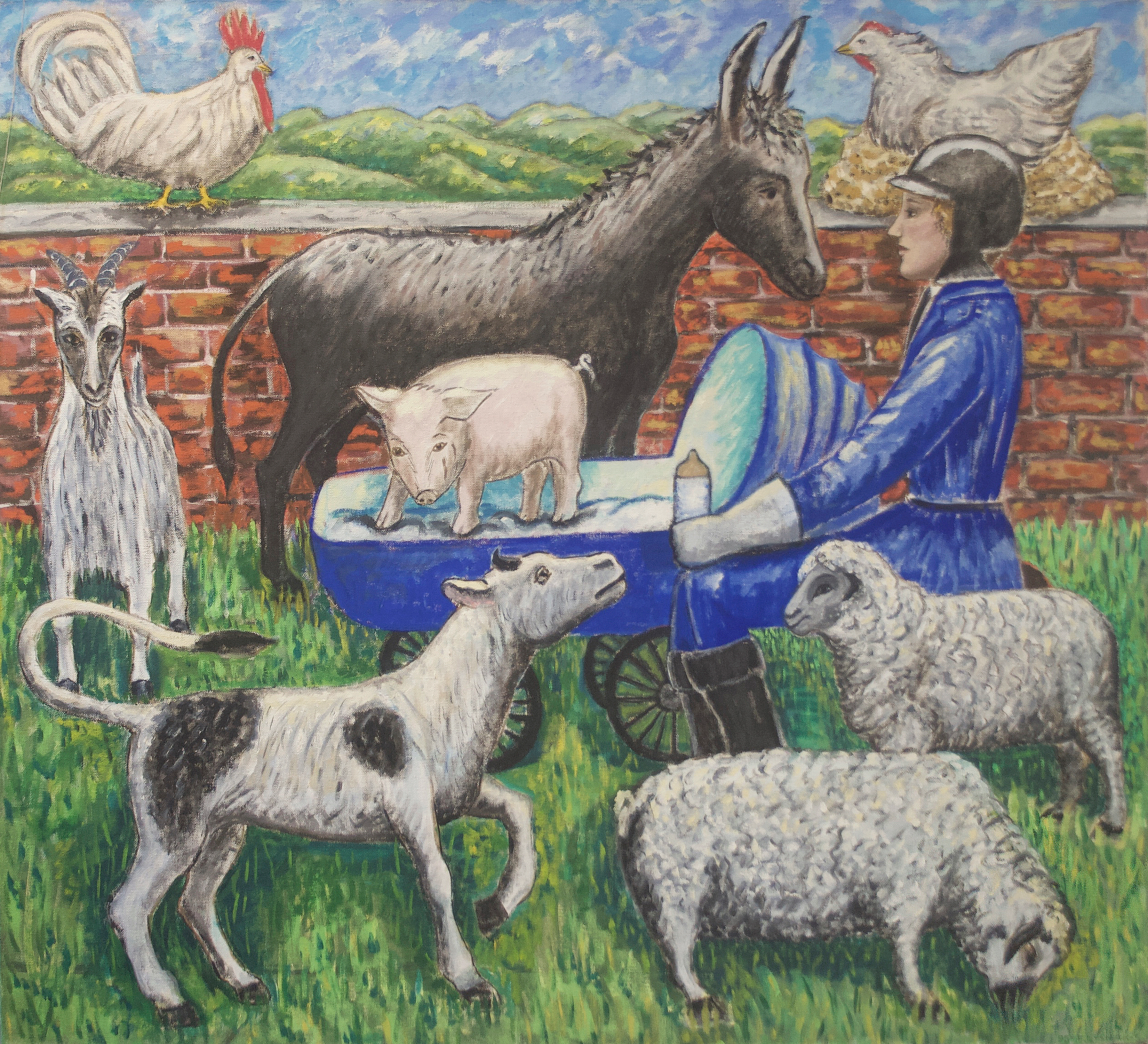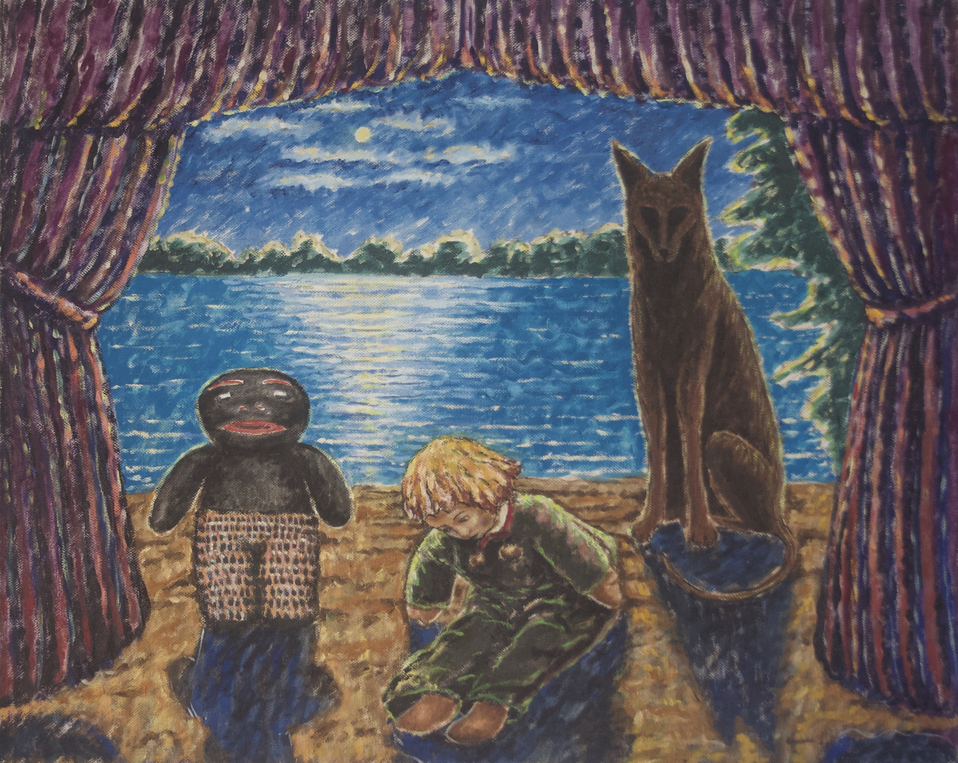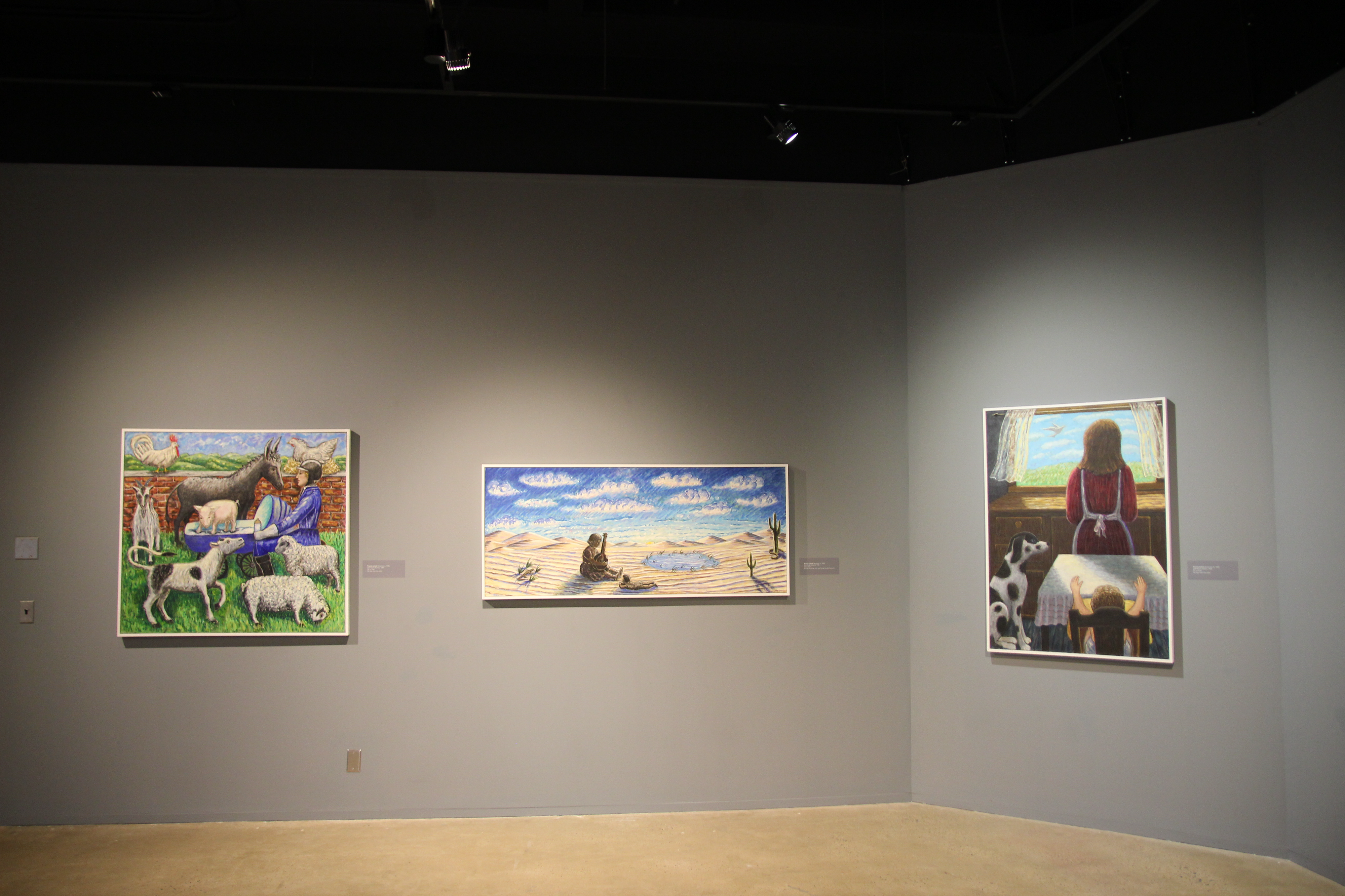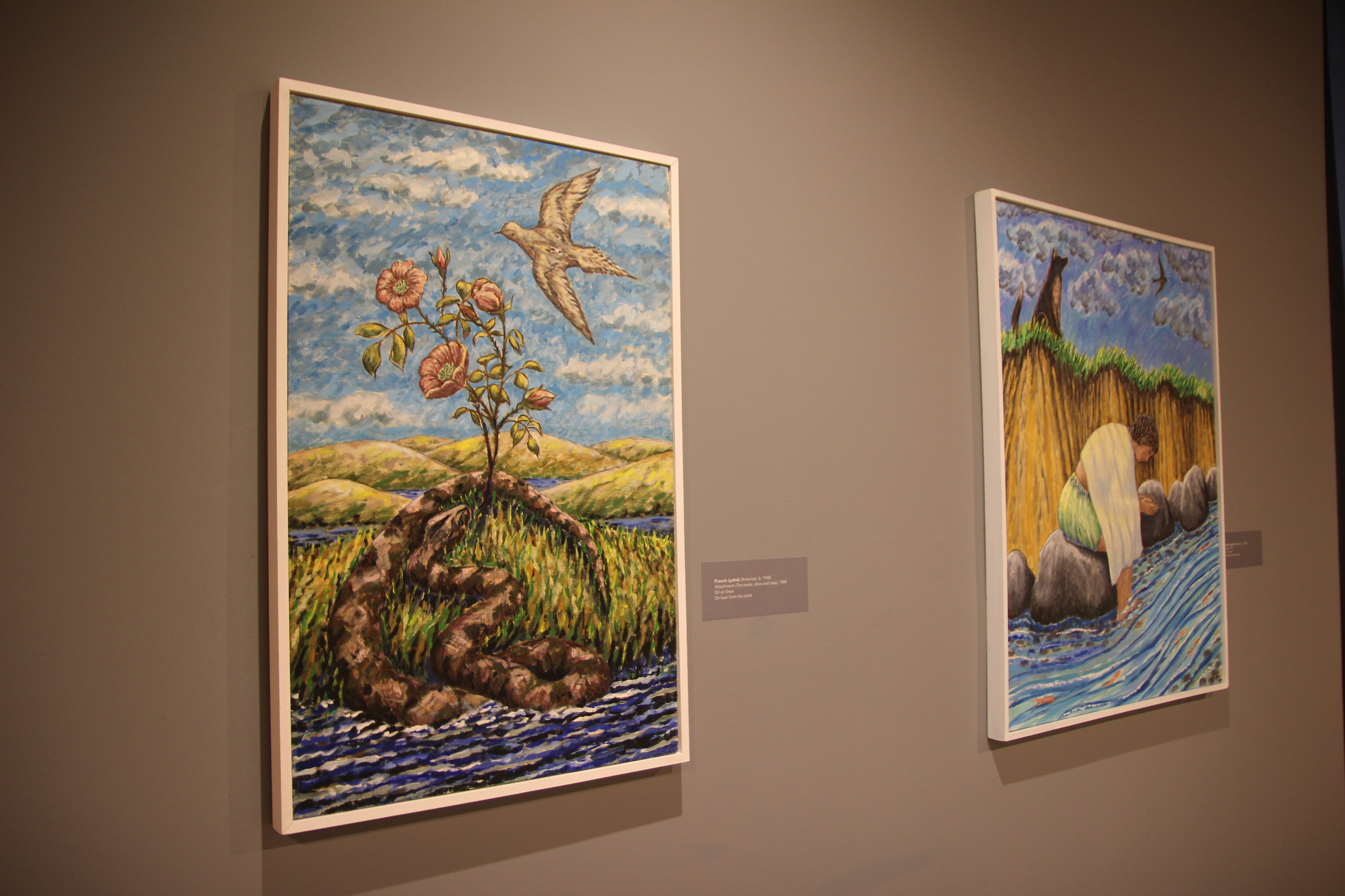During the 1970s, Lyshak developed a style of painting that deviated from the prevailing trends of Minimalism, Pop, and Conceptual Art. Combining dreamlike images of dolls and toys with human and animal figures, she set out to explore psychological themes from a feminist perspective, and in 1993 staged an exhibition that examined her own recovery from sexual abuse. Lyshak draws on her own lived experience—including the trauma of childhood abuse—to conjure hauntingly allusive scenes with something of the quality of modern myths. Aiming to transcend the purely rational by establishing spaces for dreaming and reflection, emotional exploration and release for the viewer, she also maintains her own indelible perspective, subtly advancing a feminist outlook and pursuing a foundational belief in the continuing power of image, color, and text.