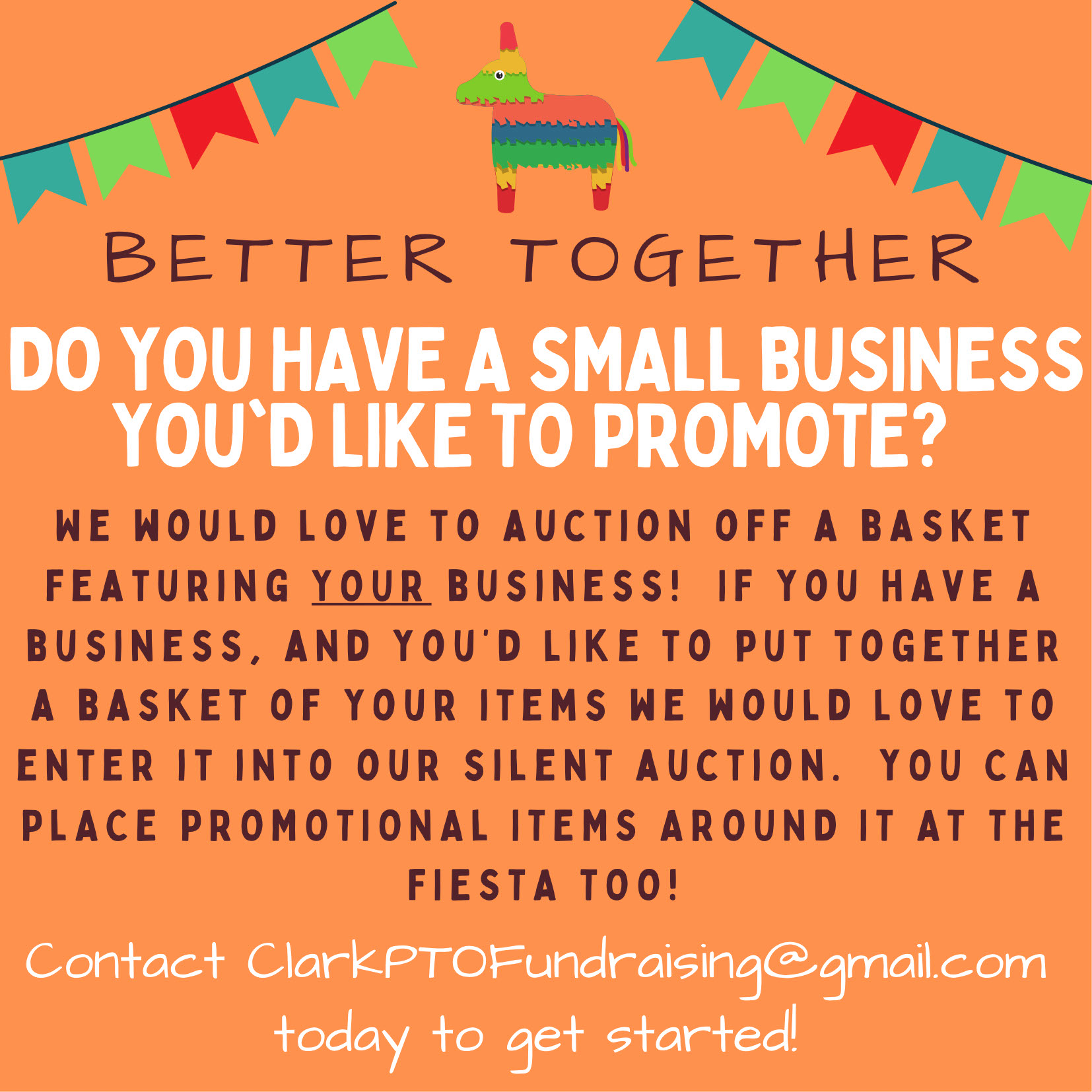 We do need YOUR help in making this event the most successful one yet! We will be hosting a silent auction during the Fiesta. We need items to create baskets to auction off. You can help us build the baskets one of three ways: