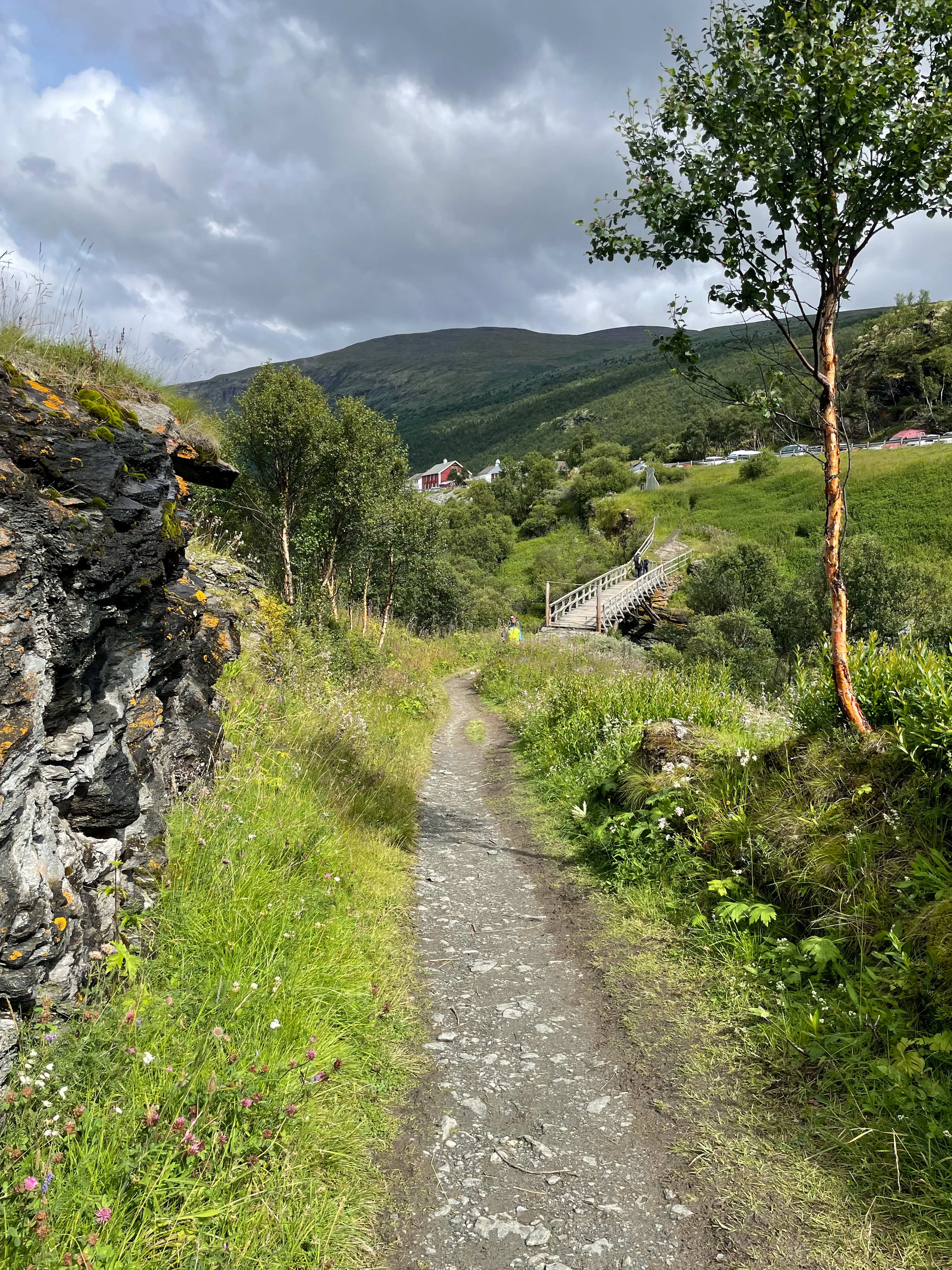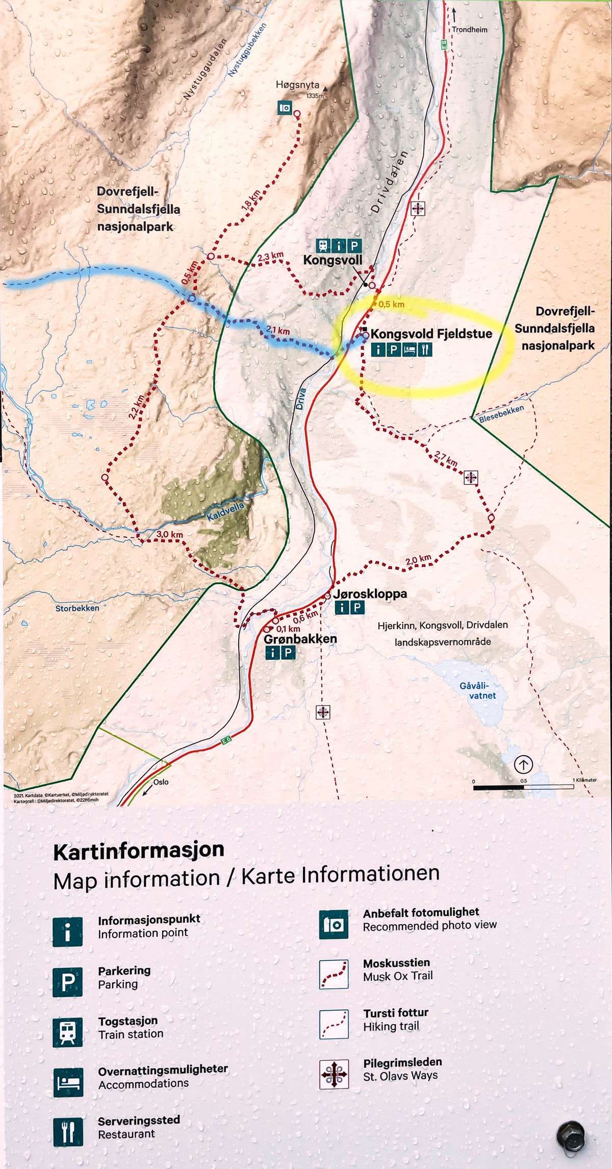 Die Brücke gegenüber vom Parkplatz über den Fluss Driva führt direkt zum Trail.