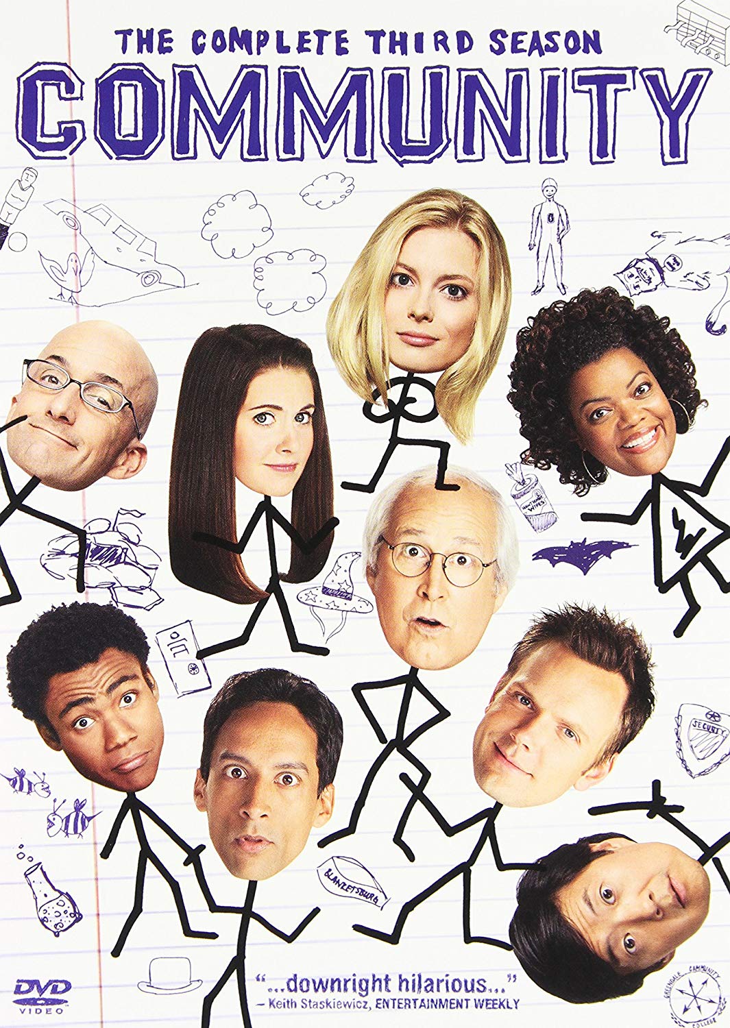 Community est une série américaine créée par Dan Harmon en 2009. Il s'agit d'une sitcom d'épisodes d'une vingtaine de minutes. Elle comprend 6 saisons, pour 110 épisodes au total, mais sa production et sa diffusion ont été chaotiques à partir de la 4e saison. Le showrunner fut mis de côté durant celle-ci, pour revenir aux commandes pour les 5e et 6e saison. Toutefois, entretemps, plusieurs comédiens principaux quittèrent la série, ce qui modifia la logique interne de celle-ci. Par ailleurs, le réseau de diffusion changea (de NBC à Yahoo pour la dernière saison) ainsi que le nombre d'épisodes par saison (de plus de 20 à une douzaine).