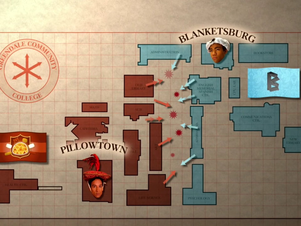 Dans l'épisode 13 de la saison 3, Troy et Abed entament la réalisation d'un fort de coussins, pour changer de leur précédent fort de couvertures. Mais la venue d'un juge du Guinness Book des Records change la donne. Un fort de couverture couvrant davantage de surface qu'un fort de coussins, Troy préfèrerait modifier le projet en cours pour obtenir le record. Abed lui n'a que faire du record et prèfre rester sur leur projet, puisqu'il s'agit avant tout de ses faire plaisir à eux plutôt que de vouloir gagner des honneurs qu'il juge dérisoires. Deux projets se développement donc en parallèle, puis en concurrence, jusqu'à l'épisode 14 de la saison 3...