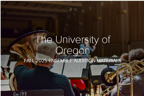 Welcome to the U of O 2025 Fall Ensemble Audition Materials Page. We are excited to welcome new and returning students for what is sure to be a fantastic 2025-2026 academic year! All of the materials necessary for the Fall auditions could be found below so please mark your calendars accordingly for your instrument's date/time block. As you scroll down this site, there are TWO buttons you should click: one for your instrument excerpts and one for the info sheet.