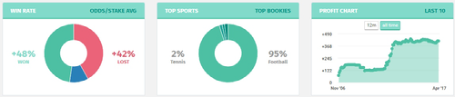 가운데 상자로 이동하면 상위 스포츠 및 상위 부키스 차트를 볼 수 있습니다. 첫 번째는 팁스터가 단일 스포츠에만 국한되어 있는지, 아니면 다양한 이벤트에서 추천하는 종목이 있는지 파악하는 데 유용합니다. 둘 다 좋을 수도 있고 나쁠 수도 있으며, 한 스포츠에 특화된 팁스터는 특정 리그에 대한 진지한 접근 방식과 심층적인 지식을 의미할 수 있습니다. 반면에 여러 스포츠 종목에서 추천하는 팁스터는 많은 인맥과 수년간의 전문 지식을 갖춘 노련한 베테랑을 의미할 수 있습니다.