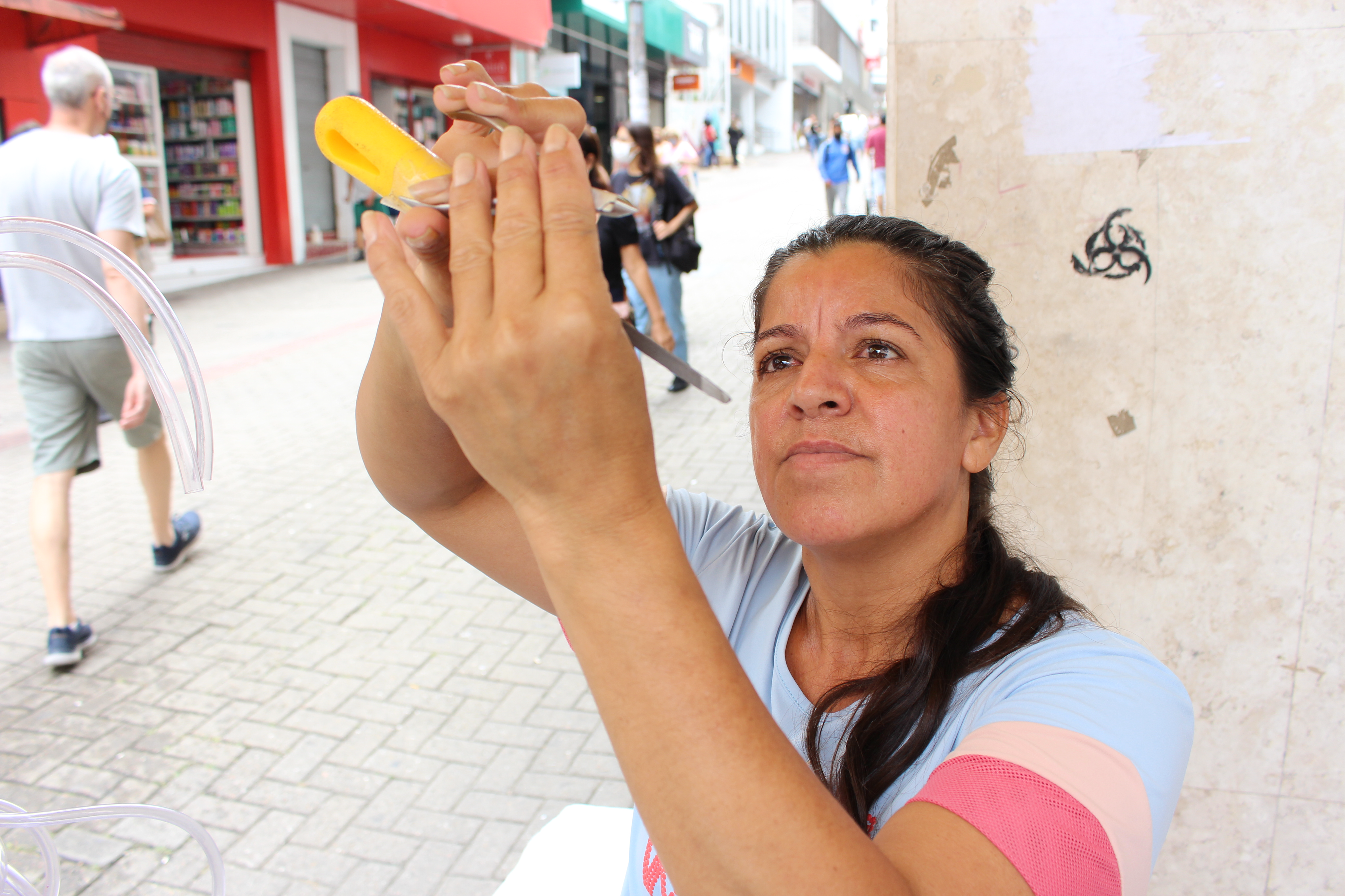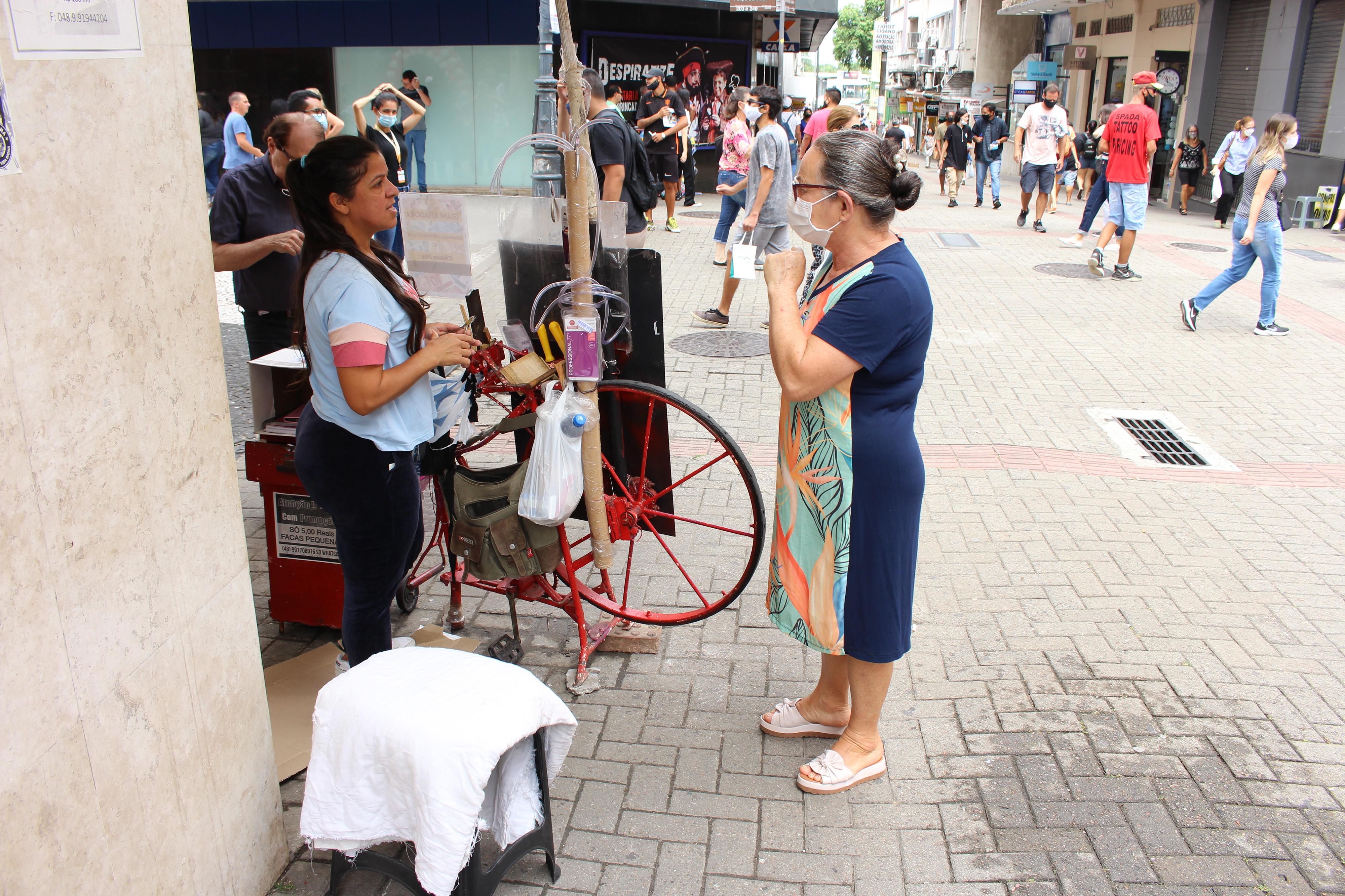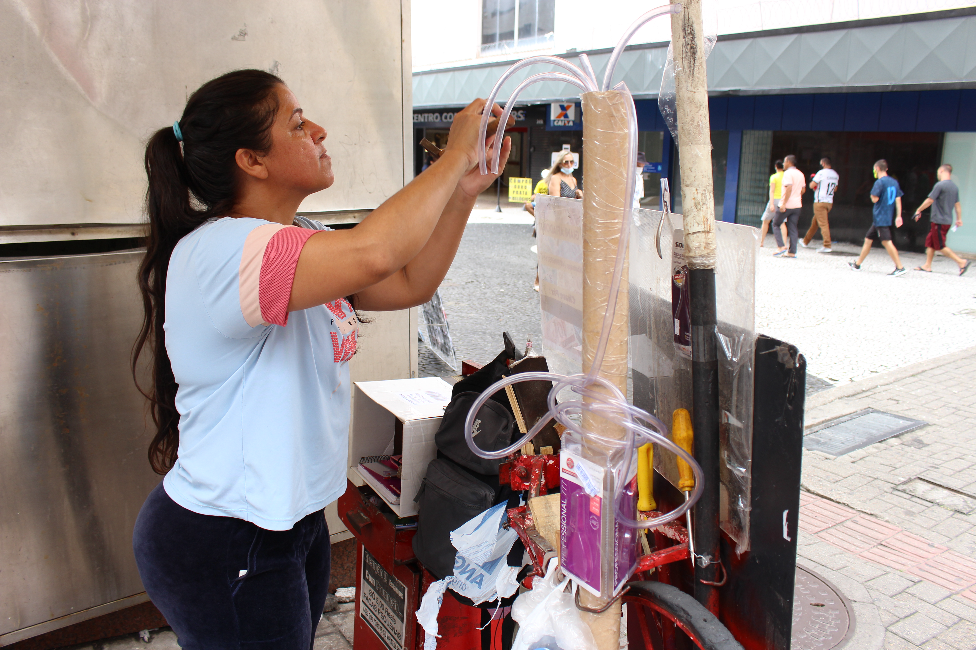 Com a pandemia, o dia-a-dia havia sido alterado e por um tempo a afiadora ficou impossibilitada de ir para o centro diante do cenário epidemiológico da Covid-19. Isolada em casa e sem trabalho, conseguiu receber cinco parcelas do auxílio emergencial, benefício que ajudou no equilíbrio das contas. Contou também com o apoio financeiro do ex-companheiro, pai da filha caçula, de quem hoje já é divorciada.