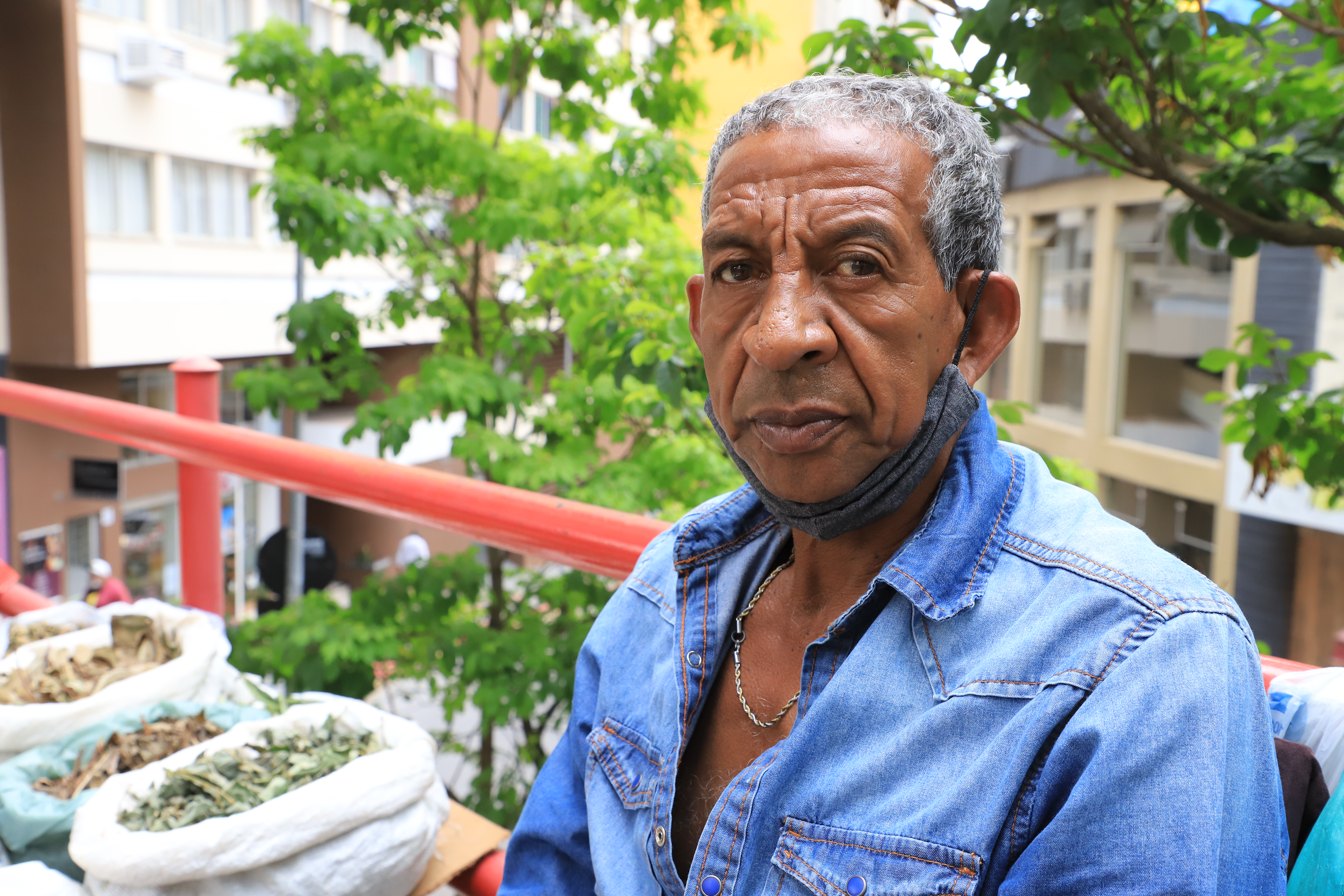 "Os remédios que tomo são sempre à base de ervas medicinais. A gente pode pegar muitos resfriados, trabalhando na rua principalmente. Mas é custoso eu ficar gripado, tenho uma saúde boa.'"