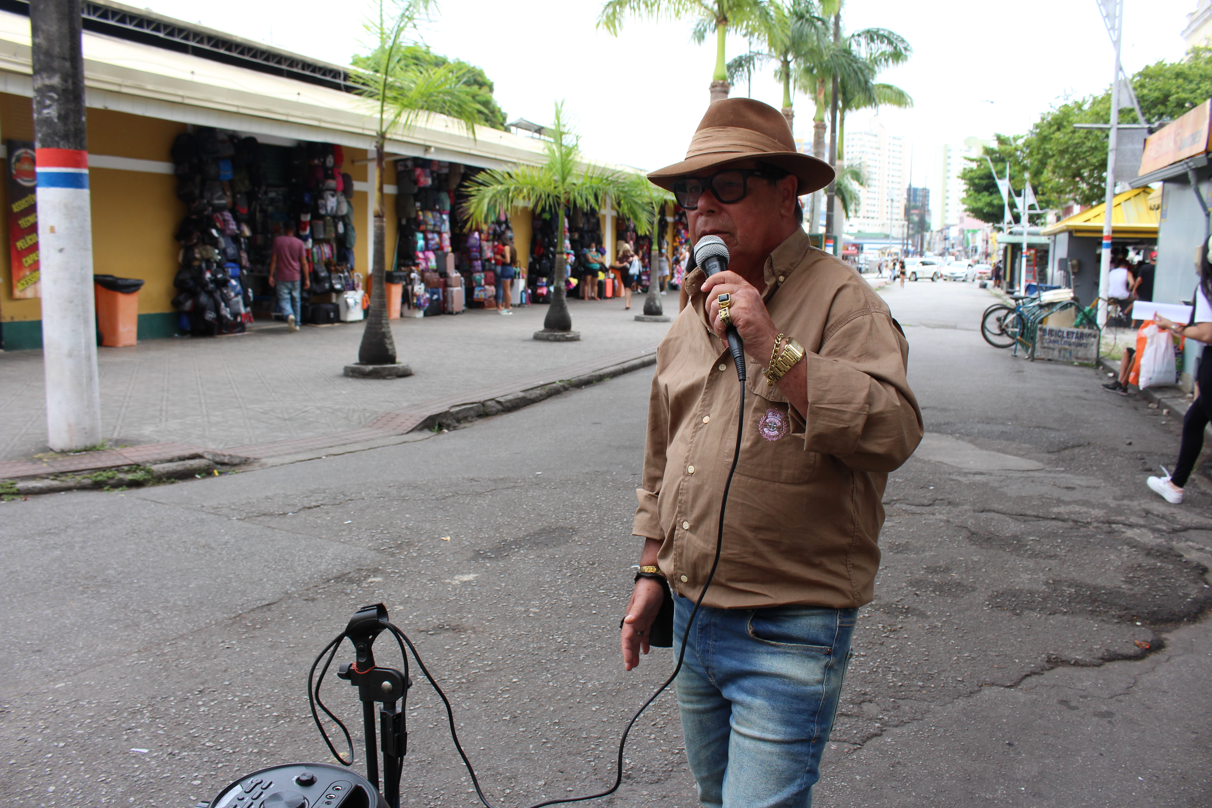 Para encontrar o Mensageiro Sertanejo no Centro, é preciso acordar cedo e transitar entre às 7h da manhã e o meio-dia. Morador da região, ele deixa os equipamentos de trabalho - a caixa de som, CDs, microfone e um tripé - guardados no Camelódromo, onde conseguiu uma parceria. Assim é só chegar no ponto para o qual vai a pé todos os dias e montar seu palco improvisado. Os shows acontecem de segunda a sábado.
