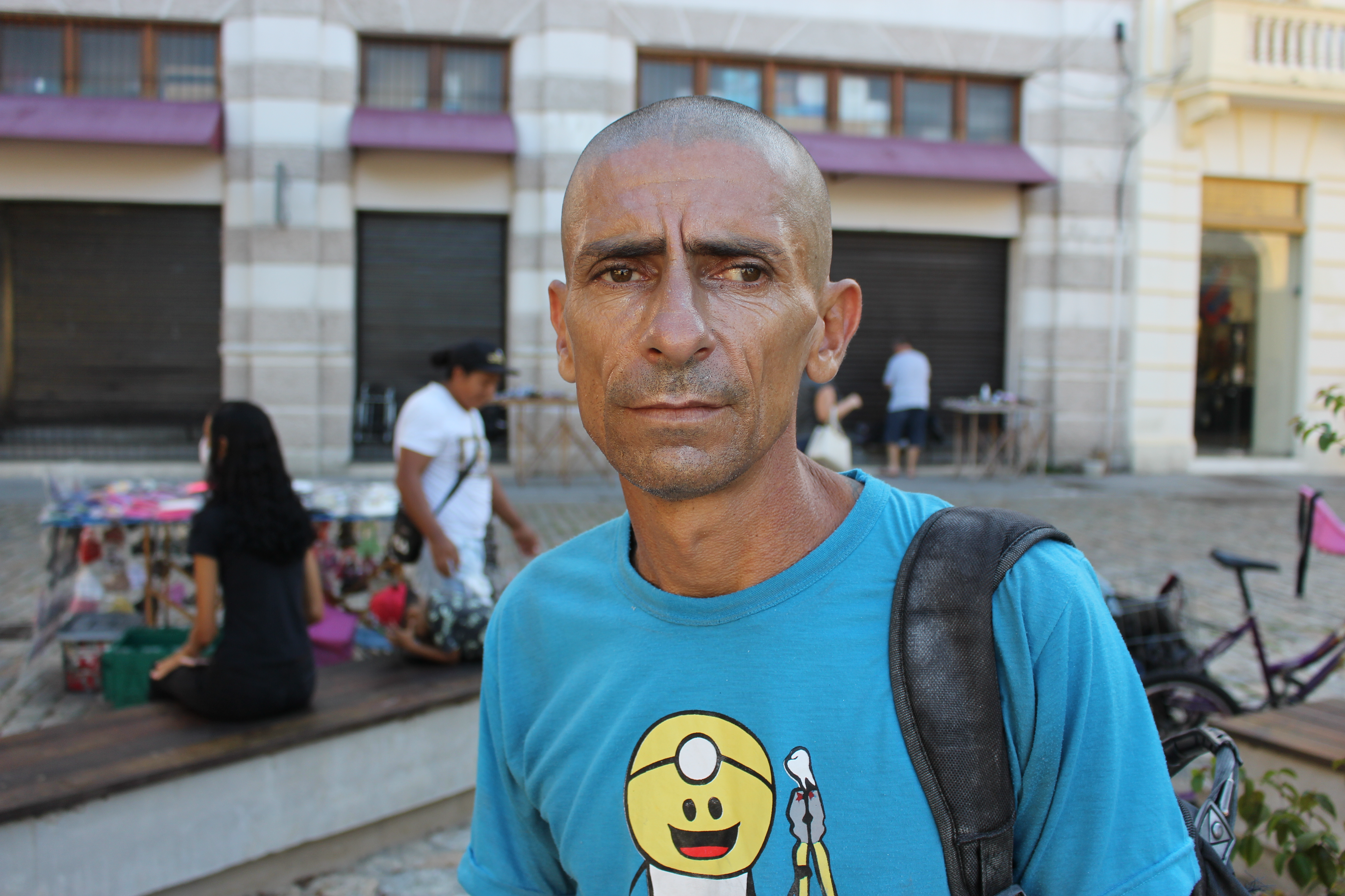 “A natureza não me atrapalha para trabalhar. O que mais me chateia é quando as pessoas fazem as necessidades fisiológicas aqui no canto. Hoje eu lavei tudo com água sanitária aqui, pinho sol. Às vezes eu jogo álcool para ficar mais tranquilo, boto um bom ar também".