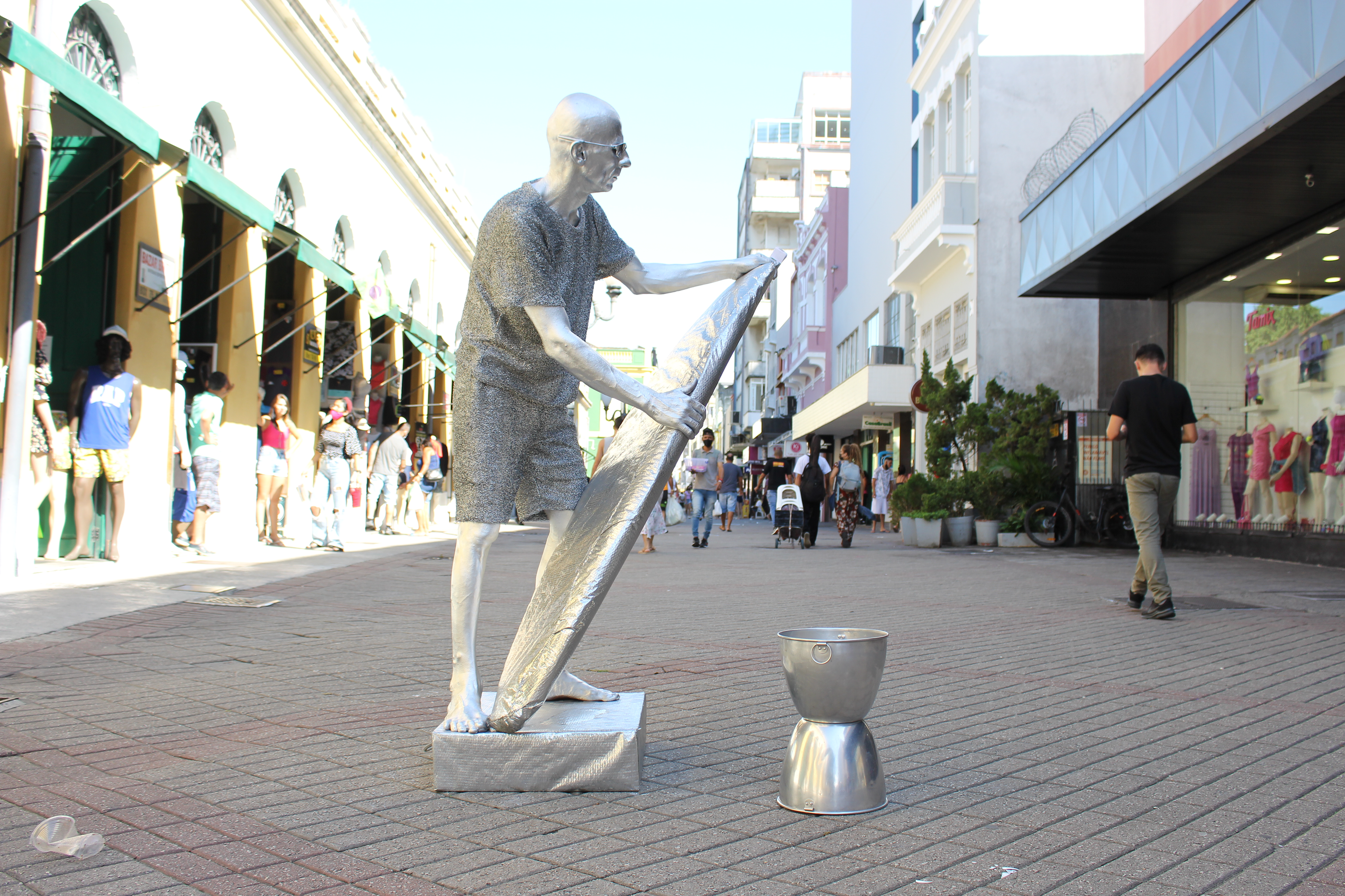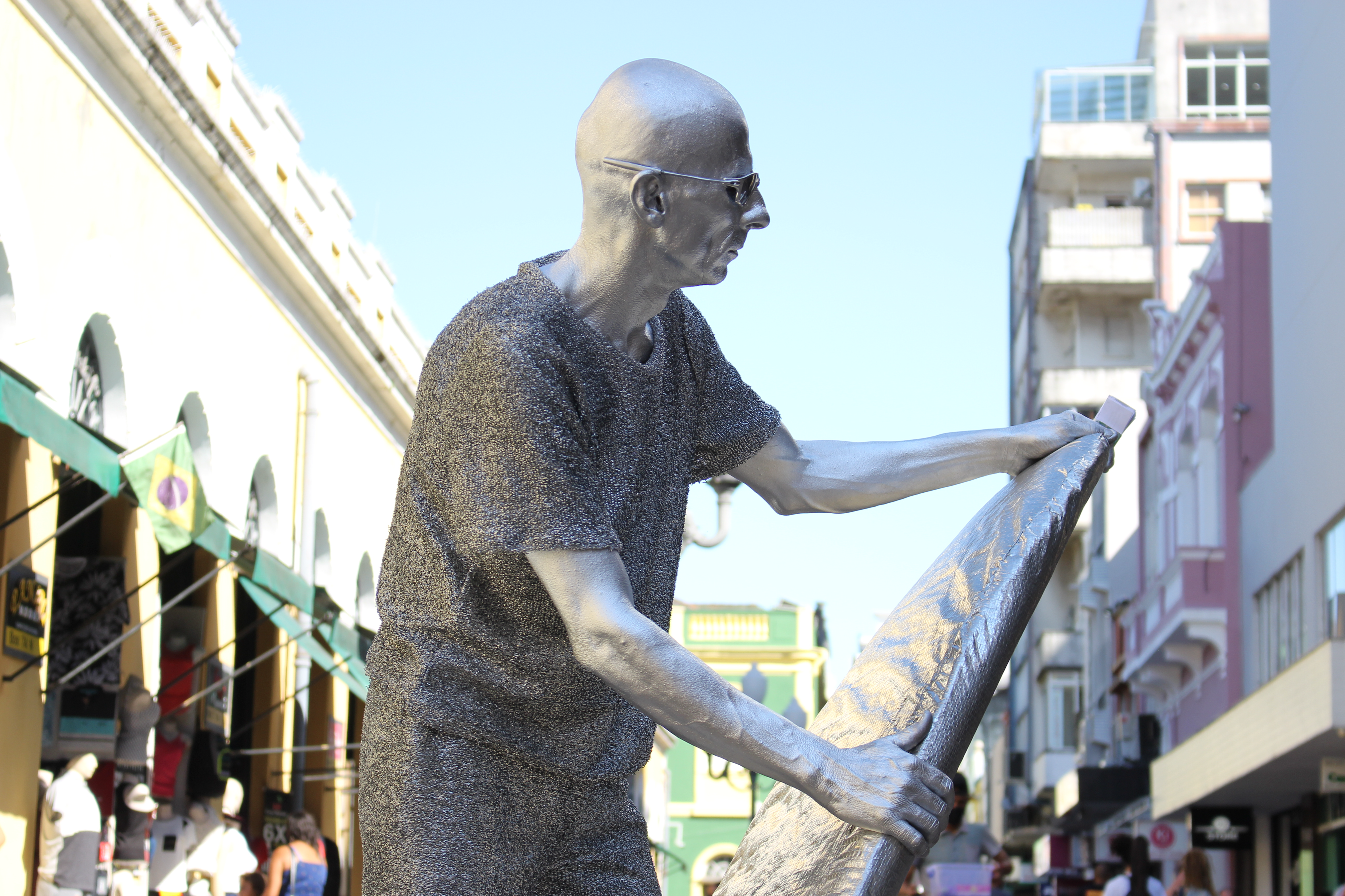 “Eu comecei depois do filme do Quarteto Fantástico, com o surfista prateado. Depois de ver eu tive a ideia, dei uma pesquisada no Google, para ver se tinha alguém que fazia esse trabalho e não tinha. Aí resolvi fazer esse personagem. No começo foi um estouro. Aqui no centro todos queriam tirar foto. Agora já vai fazer uns dez anos desde que comecei".