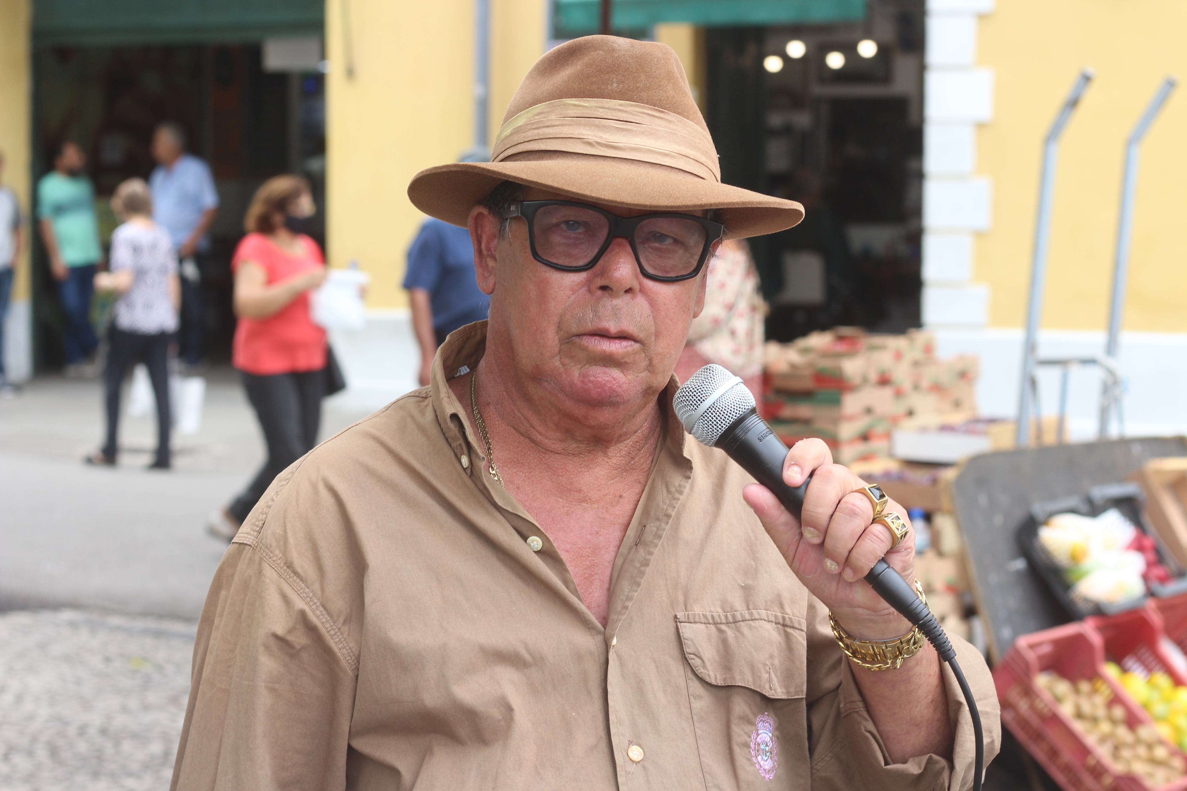 É na frente do vão central do Mercado Público, ao lado do Camelódromo Municipal, que Adi Borges Torquatto, mais conhecido como Mensageiro Sertanejo, canta aos quatro cantos, acompanhado dos seus 10 CDs e uma caixa de som. Ao todo, segundo ele, tem no repertório 1634 músicas autorais, número que fez questão de repetir mais de uma vez durante a nossa conversa.