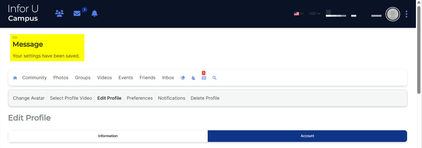 - Once the changes have been completed a Message on the upper left corner will appear, "Your settings have been saved."