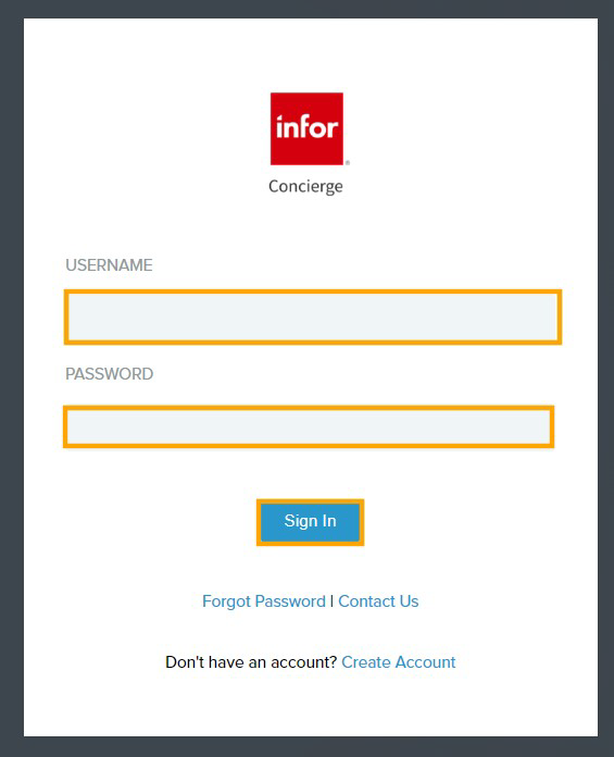 - Go to concierge.infor.com to access Infor Concierge.