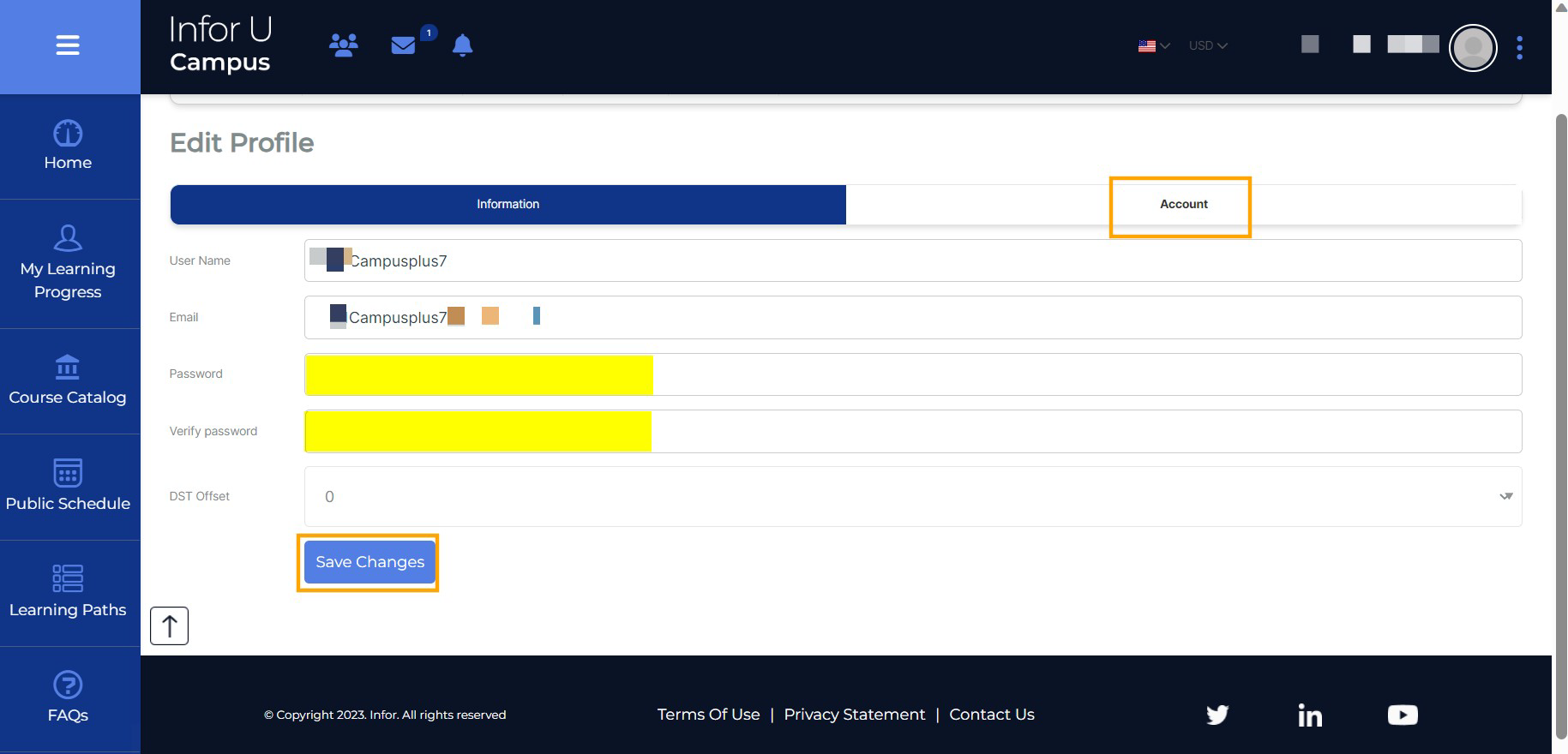 There might be a scenario that a user still has access in their Infor U Campus account but they wanted to update their password.