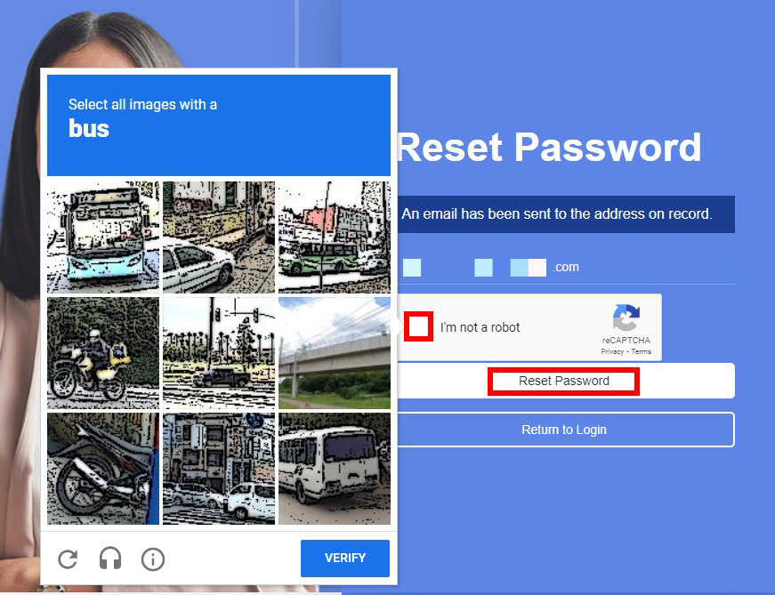 - The user should follow the reCAPTCHA instruction.