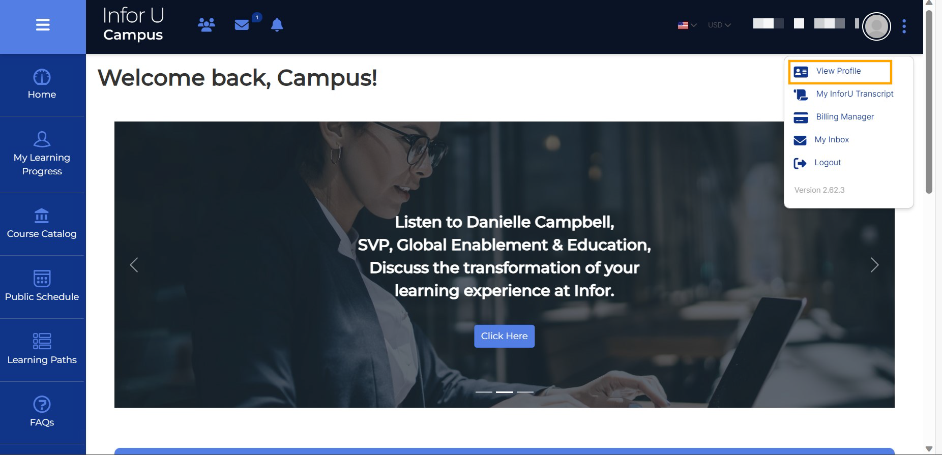- The user should have access to the Infor U Campus home page.