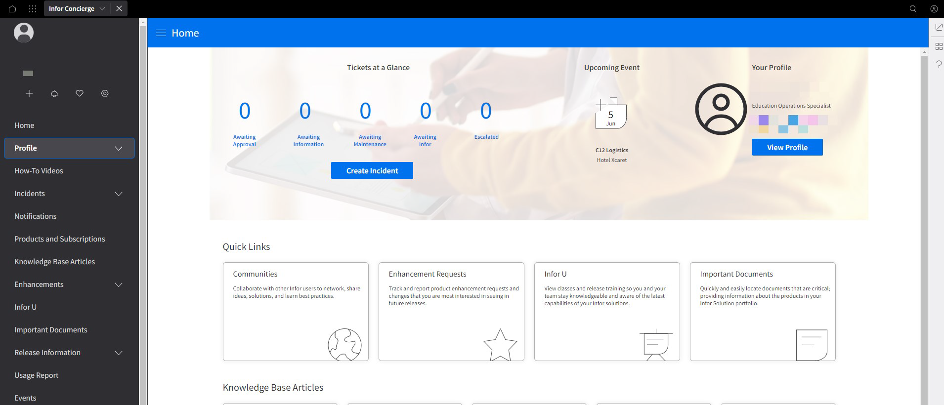 - The user will now have access to Infor Concierge account.