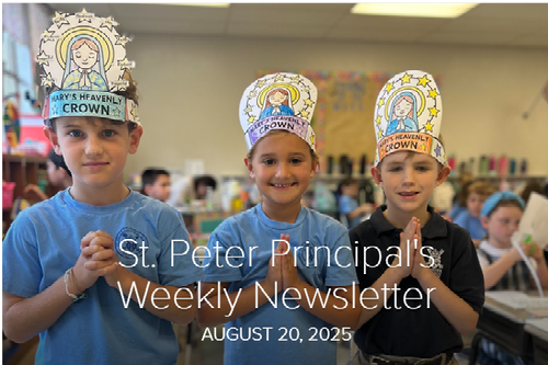 As a reminder, the Cafeteria is operated by the Archdiocese of New Orleans School Food and Nutrition Services. Please use their online payment system, MYSCHOOLBUCKS.COM, to add money to your child's pre-pay cafeteria account. Please email Mrs. Stephanie Silvers, Cafeteria Manager, at stpetercov@schoolcafe.org if you have questions.