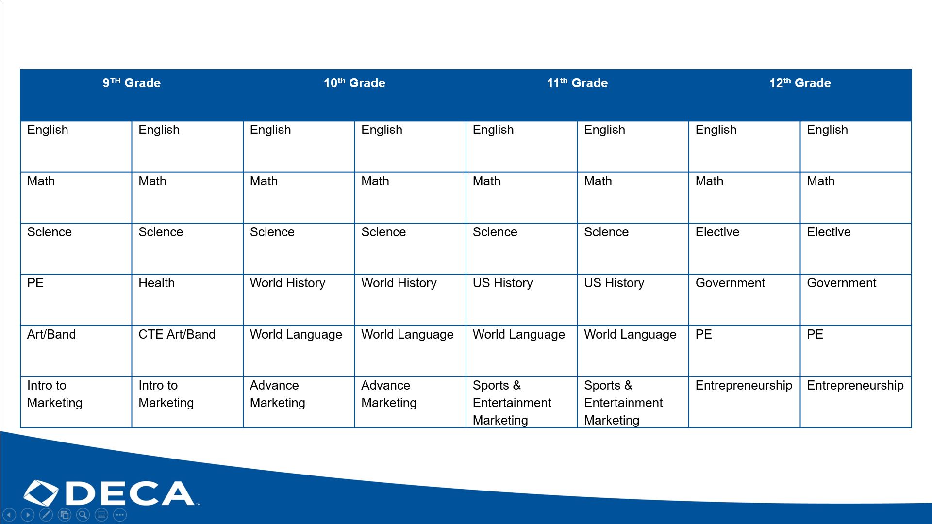 Is a "co-curricular" program that gives students an opportunity to aspire higher, become leaders, and prepare to thrive in the global economy. Students can enhance their classroom experience by becoming a DECA member. DECA members are able to attend conferences and compete at the local, state, and international level with DECA.
