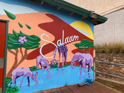 Pictured above is a mural outside of the attendance office at Iftin Charter School in San Diego, Calif. on Thursday, March 13, 2025. The mural says "Salaam" which is a common greeting in Arabic-speaking and Muslim countries. (Photo by Hannah Psalma Ramirez)