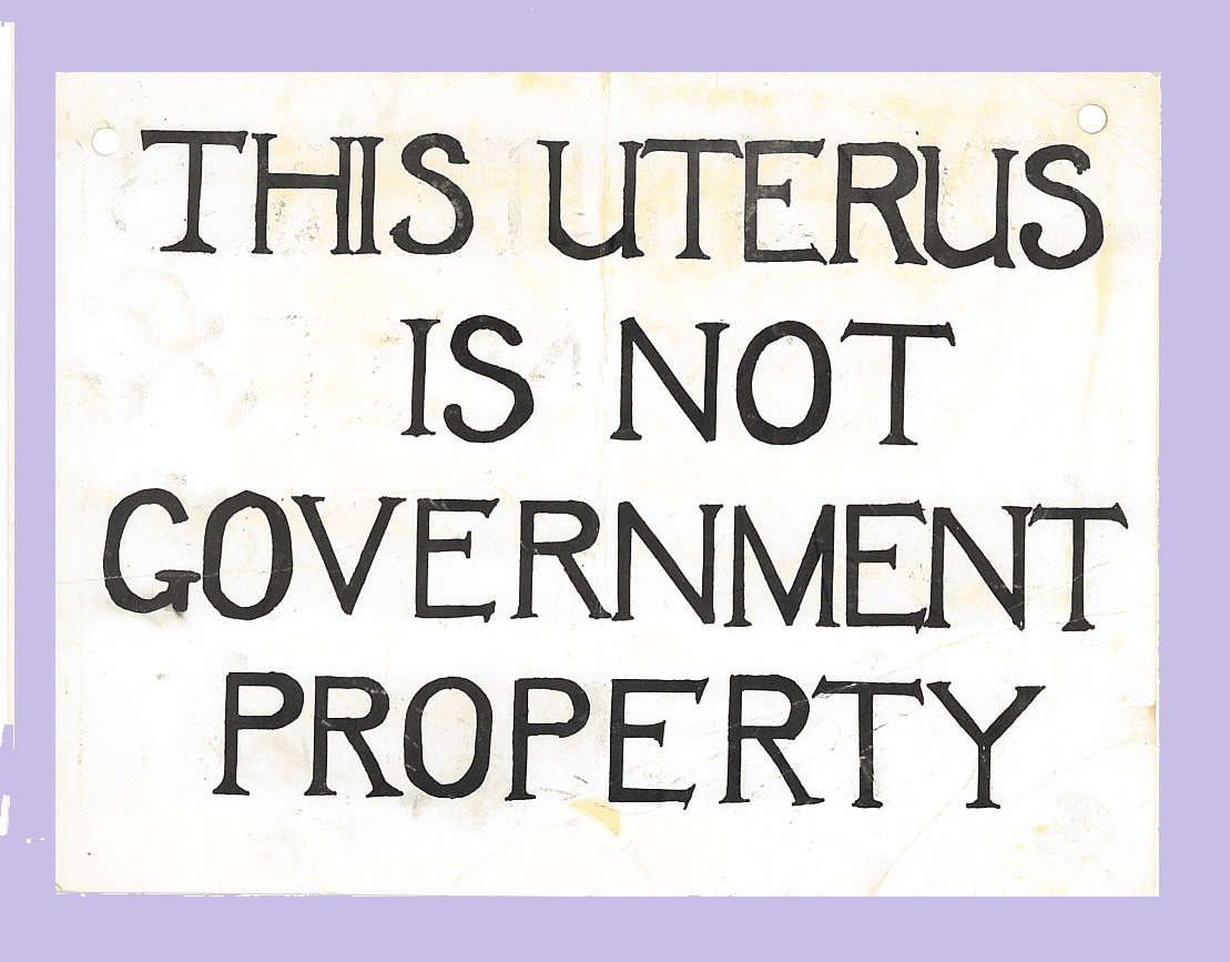 Left: "This Uterus is not Government Property," small cardboard sign (c.1968-1970). From the Helen Levine fonds (10-006) at University of Ottawa Archives and Special Collections.